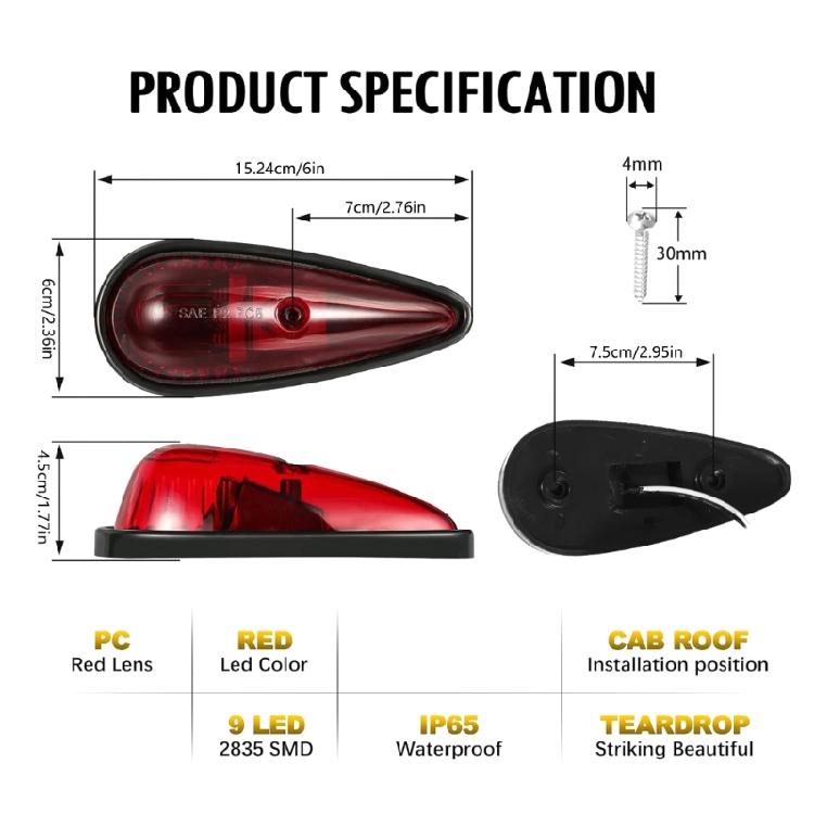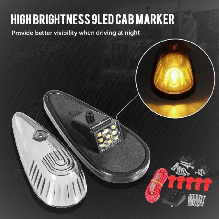 Teardrop Cab Lights for Car Truck Replacement Waterproof 9 LEDs Cab Light Replacement Roof Running Top Auto Accessory