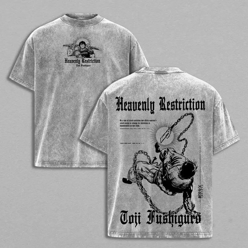 Jujutsu Kaisen Годжо Сатору Аниме Футболка Винтажная Вареная Одежда Оверсайз Мужская Женская Одежда Хлопок Футболка с Коротким Рукавом Топы
