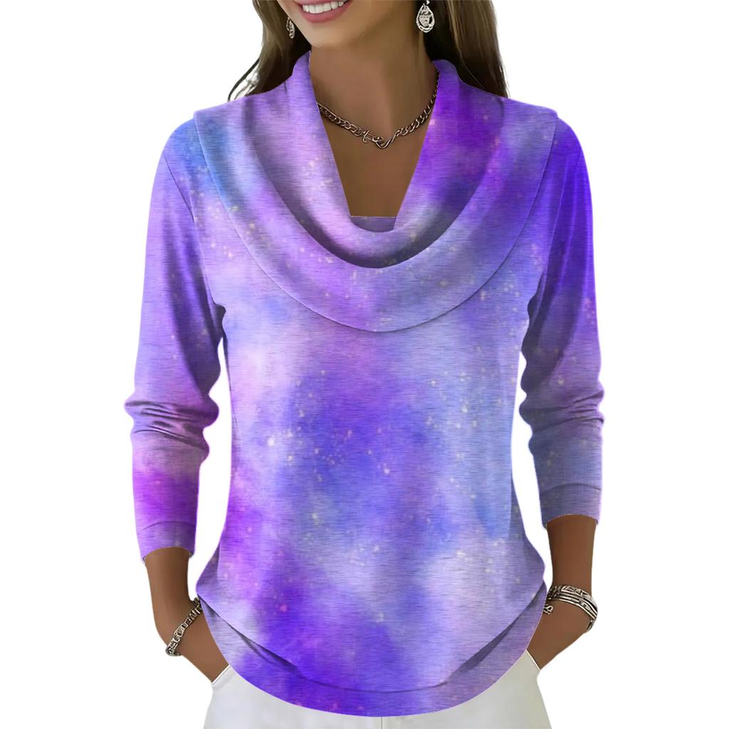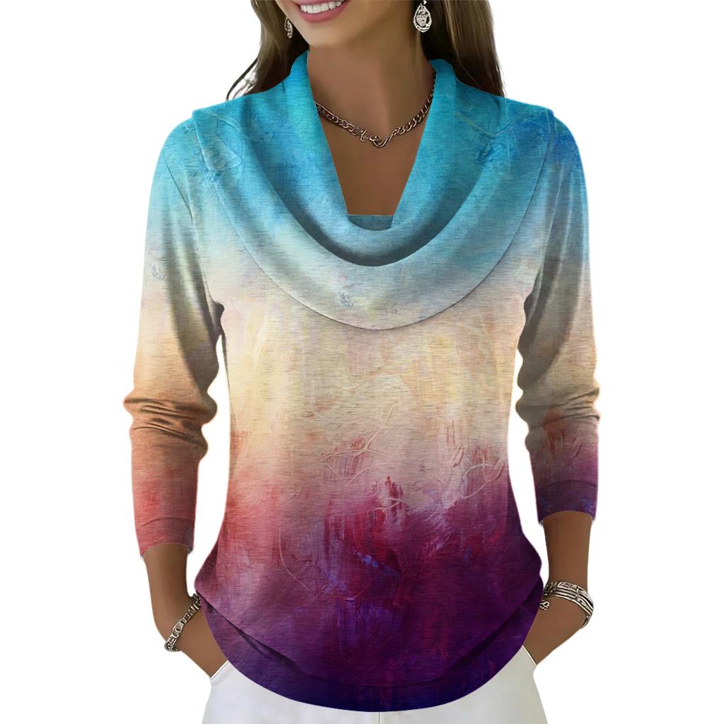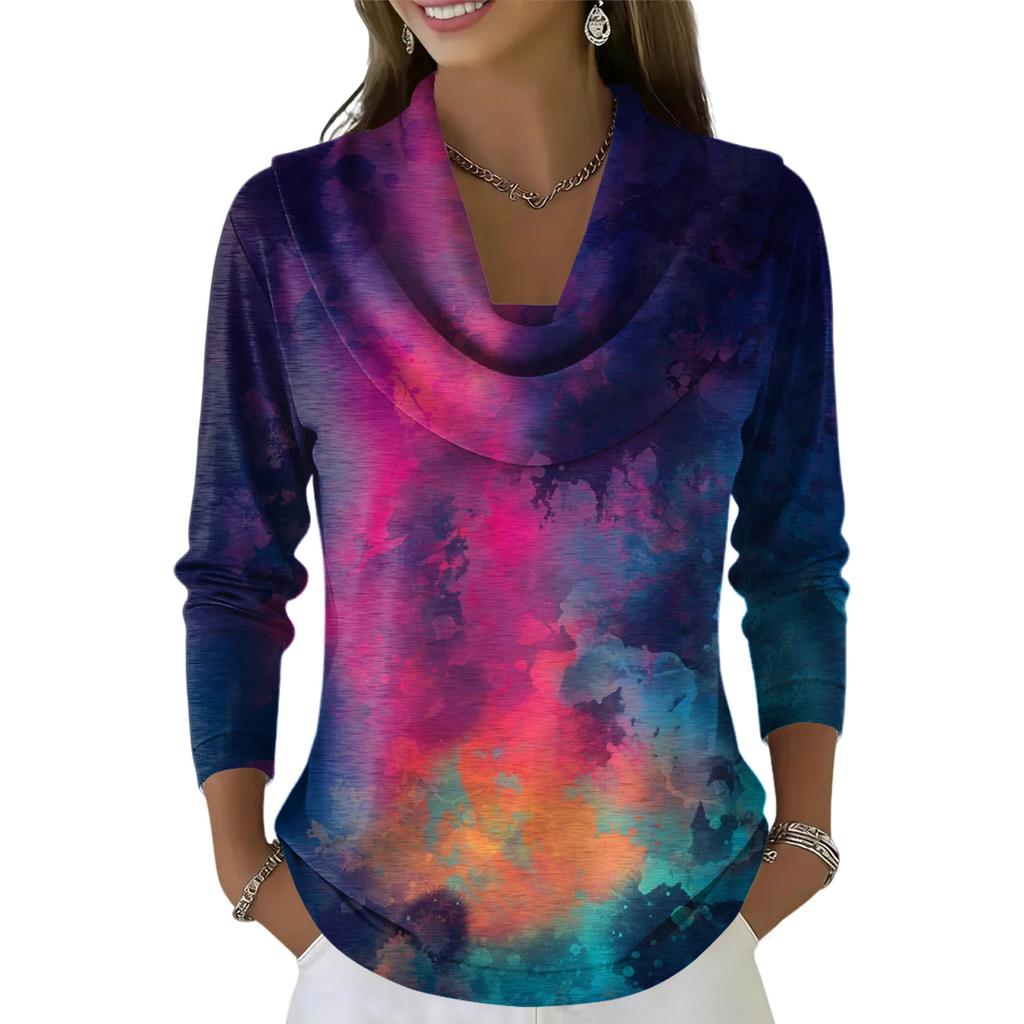 Женский повседневный и модный топ с длинными рукавами и принтом, с круглым вырезом