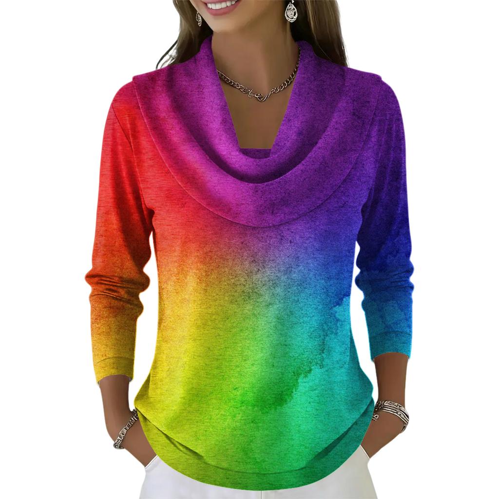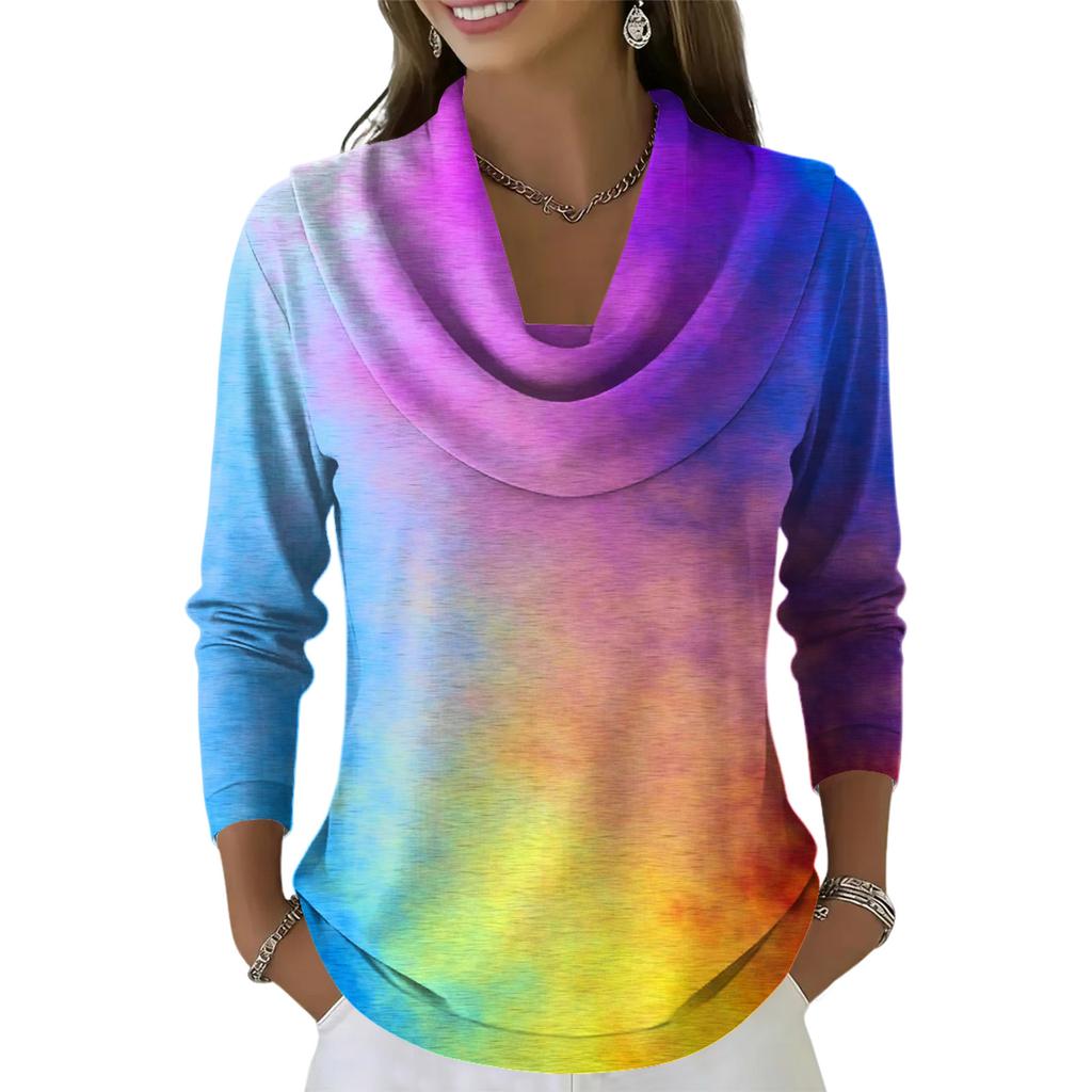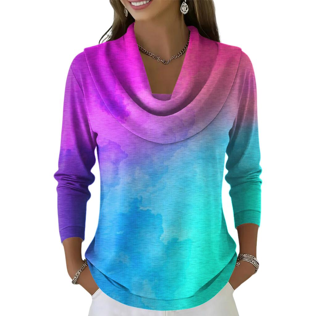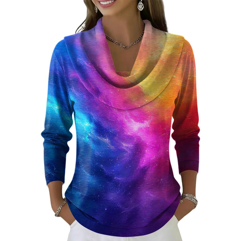 Женский повседневный и модный топ с длинными рукавами и принтом, с круглым вырезом