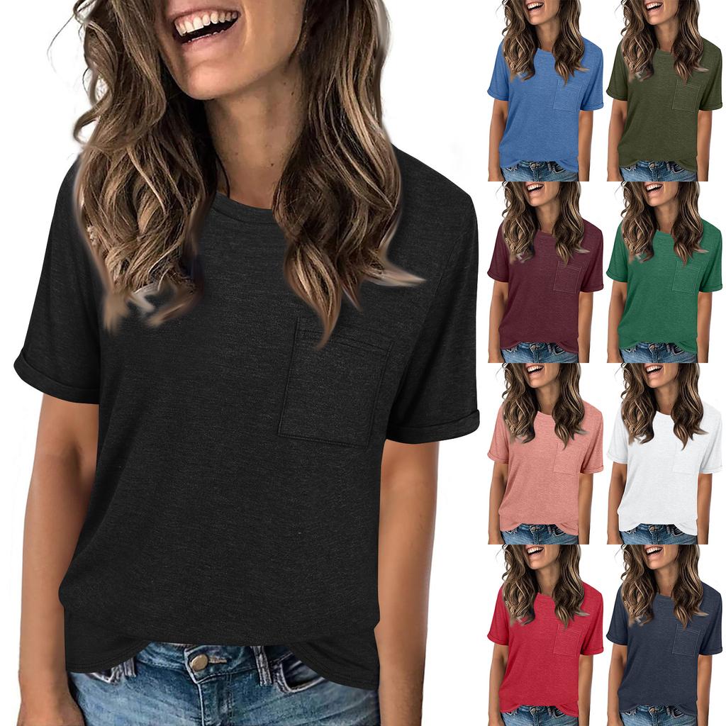 Женская модная футболка с круглым вырезом, однотонная, свободного кроя, с коротким рукавом — купить товар онлайн с бесплатной доставкой по всему миру!