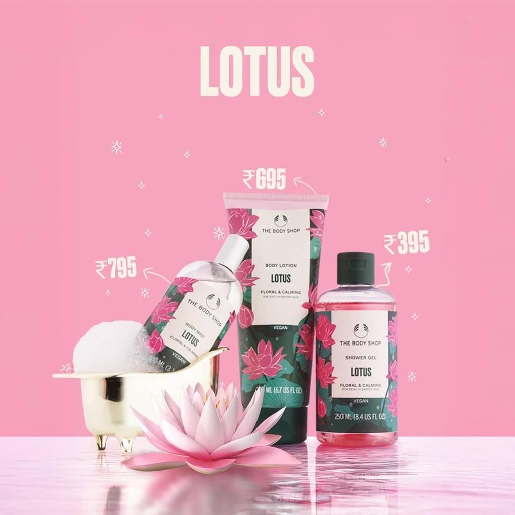 The Body Shop Lotus Shower Gel 250ml Gentle Hydrating Floral Scent Bathing Gel for Relaxation