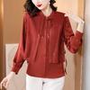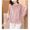 Новый китайский вышитый повседневный шифоновый топ женский с длинным рукавом осенний для мамы рубашка-обманка из двух частей