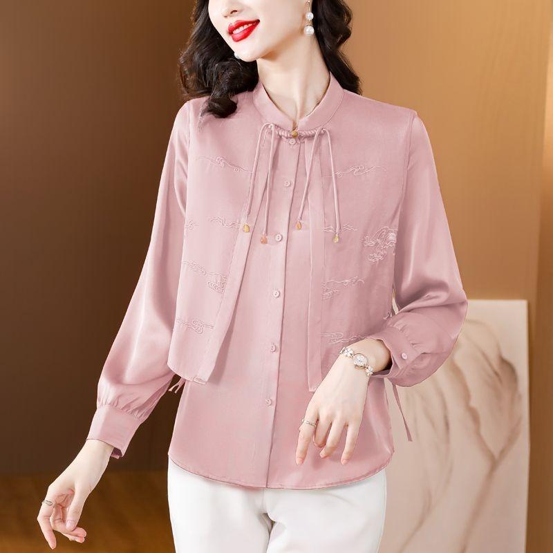 Новый китайский вышитый повседневный шифоновый топ женский с длинным рукавом осенний для мамы рубашка-обманка из двух частей — купить товар онлайн с бесплатной доставкой по всему миру!