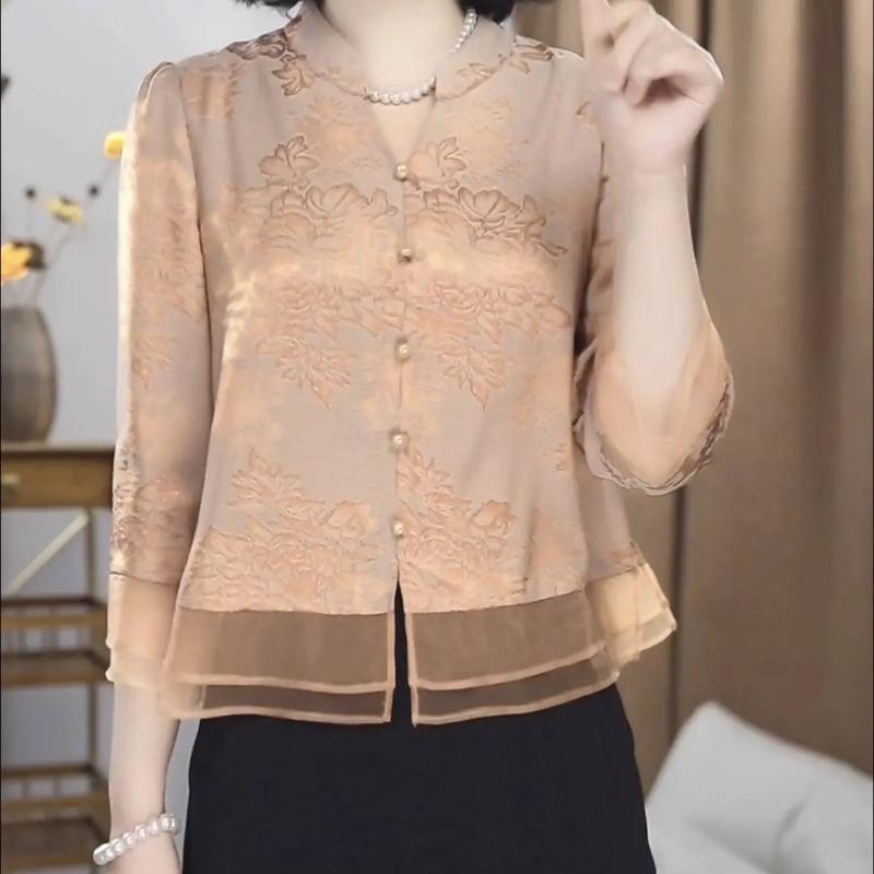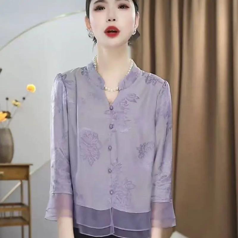 Перламутровый Сатин Элегантный Темперамент Пуловер Летний Новый Роскошный Модный Повседневный Топ Одежда для Мамы