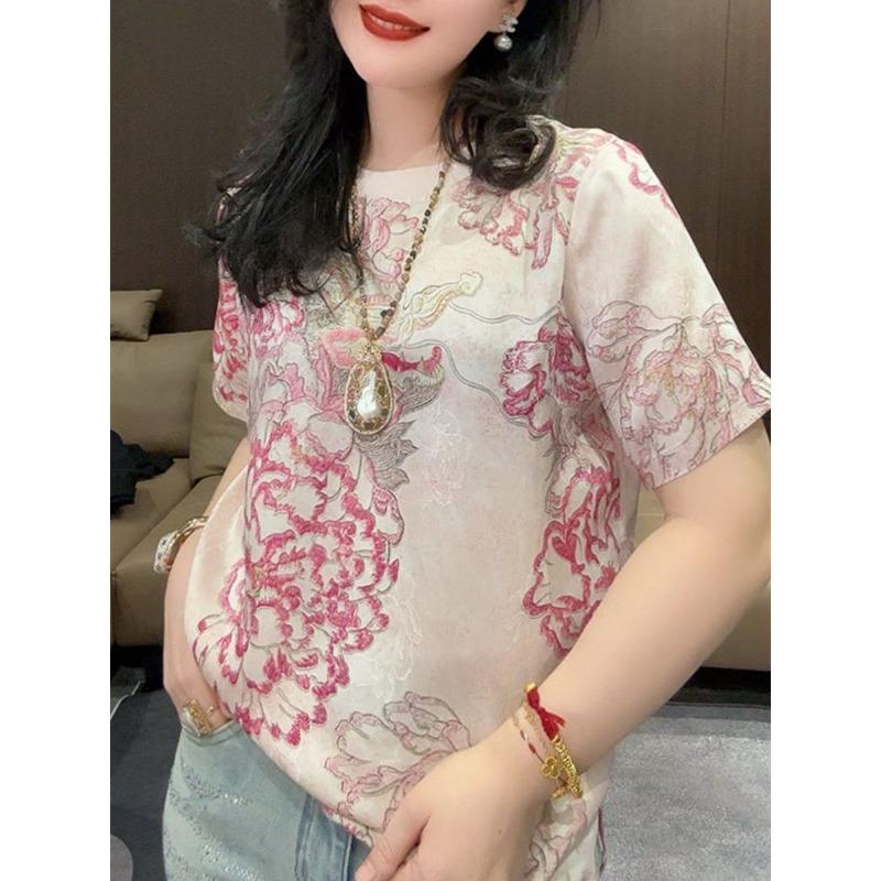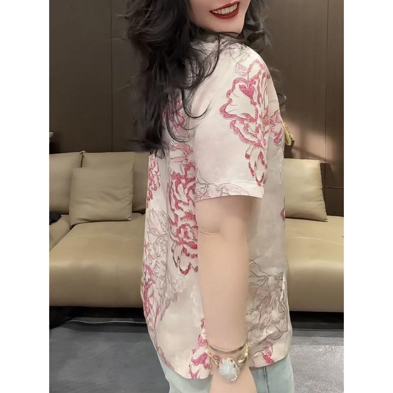 Шикарный дизайн в китайском стиле, принтованные новые топы с коротким рукавом, женские универсальные свободные футболки с круглым вырезом