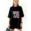 Oversized T Shirt Black Tanned And Tipsy Cocktail Print For Beach Party Summer Outfits — купить товар онлайн с бесплатной доставкой по всему миру!