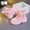 Модные детские кожаные сапоги-принцессы Весна-Осень Детские ботинки