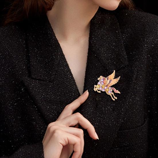 Вдохновленная мифическим Пегасом, брошь демонстрирует трехмерные крылья и динамичную позу галопа, создавая мечтательный и привлекающий внимание аксессуар..