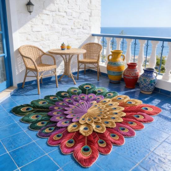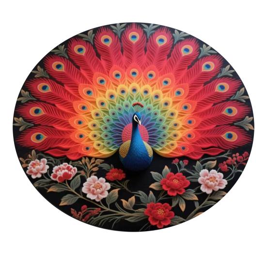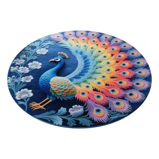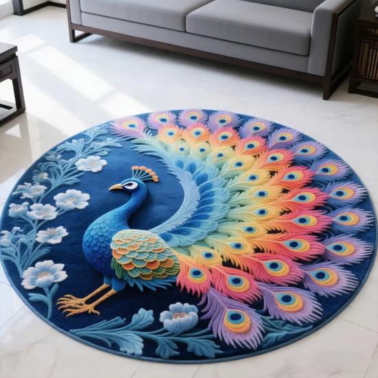 Привлекательный 3D-дизайн павлина с богатой глубиной цвета: Коврик демонстрирует реалистичную текстуру пера, подчеркнутую яркими цветовыми градиентами, создавая потрясающий трехмерный визуальный эффект.. Этот художественный дизайн улучшает атмосферу любой комнаты, превращая коврик как в функциональное напольное покрытие, так и в элегантный декор.