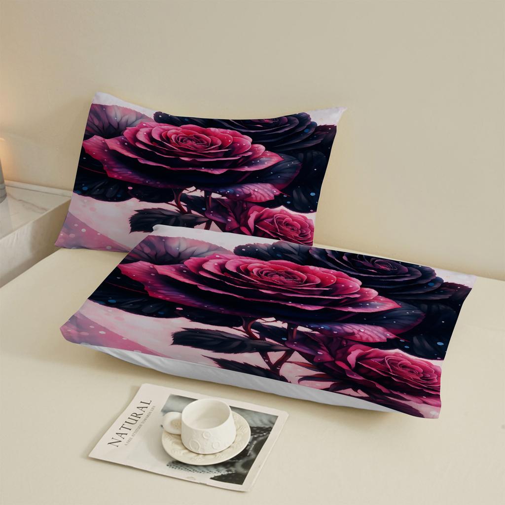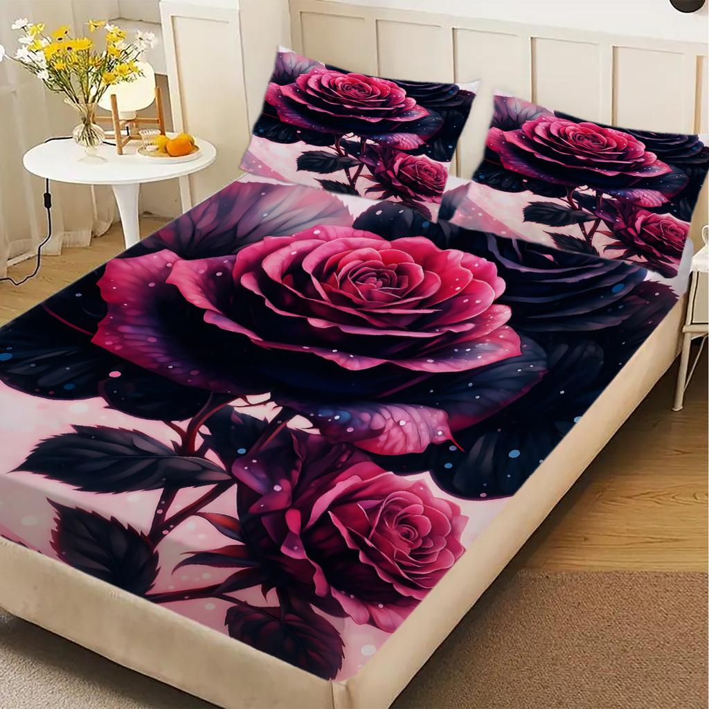 Фиолетовый комплект простыней на резинке Романтическая роза 3D-печать 100% полиэстер микрофибра Наматрасники Уютный постельный комплект с 2 наволочками