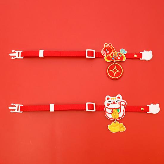 Этот регулируемый ошейник для питомцев разработан для удобной посадки на котят, щенков и питомцев малого и среднего размера благодаря своей пряжке и функции регулировки длины.. Изготовлен из мягкого, приятного для кожи полиэстера, не вызывает раздражения или царапин, позволяя вашему питомцу носить его весь день без дискомфорта.. Воротник украшен яркой вышивкой с изображением счастливых кошек и зодиакальных пони, что придает ему праздничный вид, идеально подходящий для Праздника Весны или новогодних торжеств..