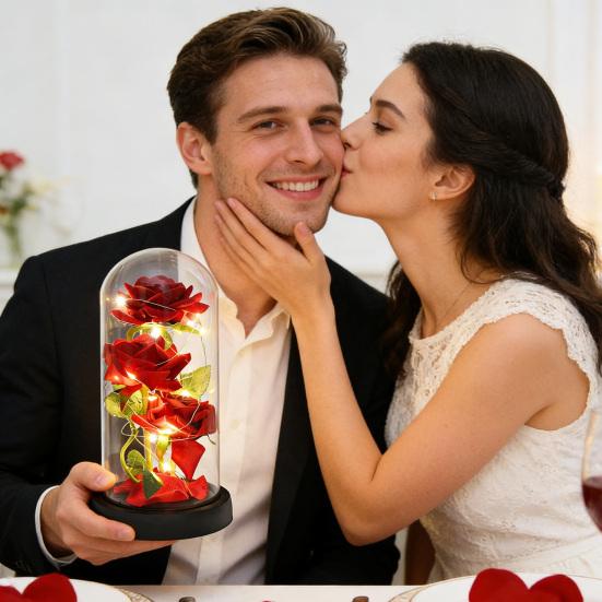 Этот элегантный купол с красной розой — идеальный романтический подарок на Рождество, День святого Валентина, День матери, дни рождения и свадьбы.. Этот цветок, искусно выполненный в виде красной розы из высококачественного шелка, который выглядит удивительно реалистично, символизирует «веру в вечную любовь».