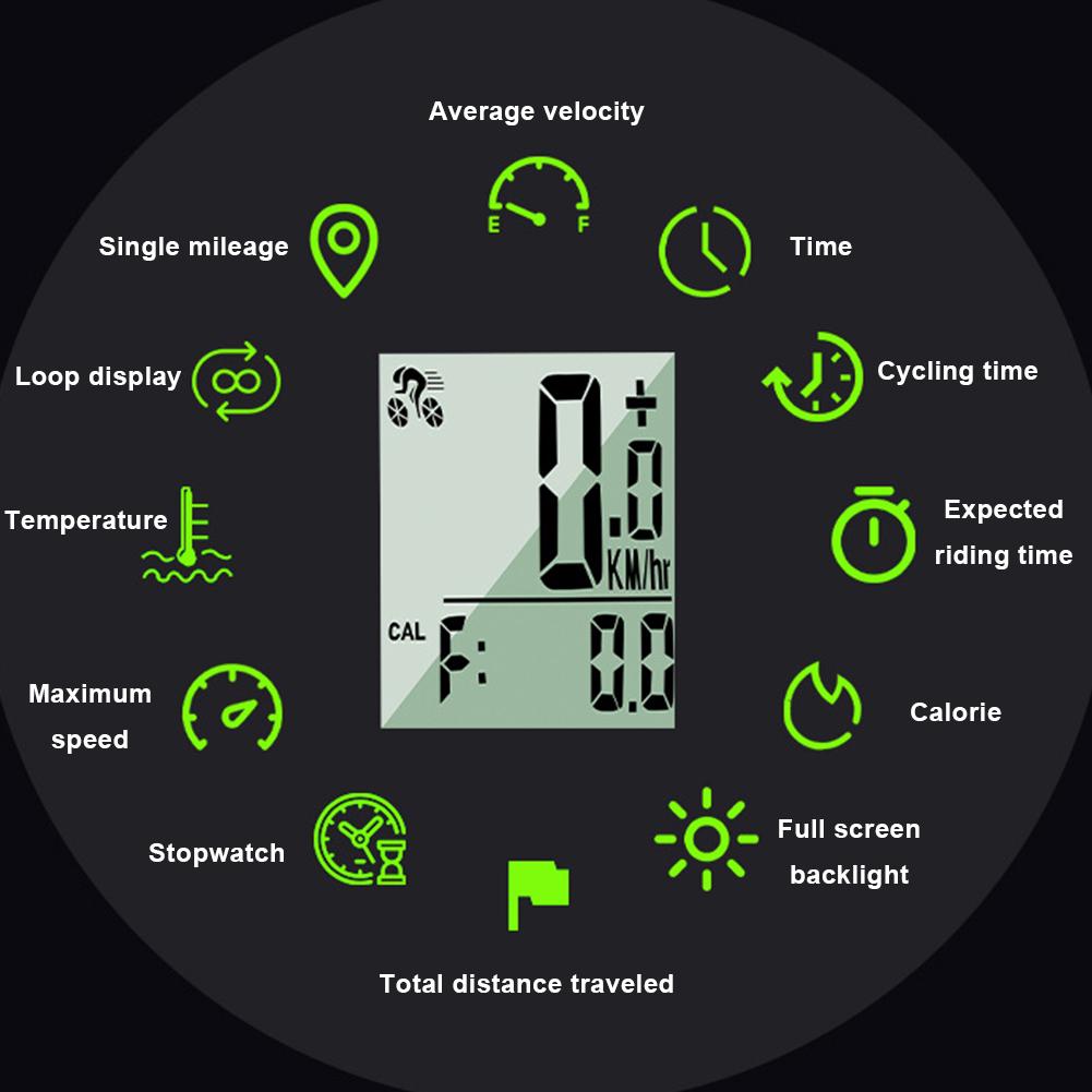 Wireless Bicycle Computer with Backlight & Multi-Functions Mountain Bike Speedometer Bike Speedometer Odometer for Road Bike MTB