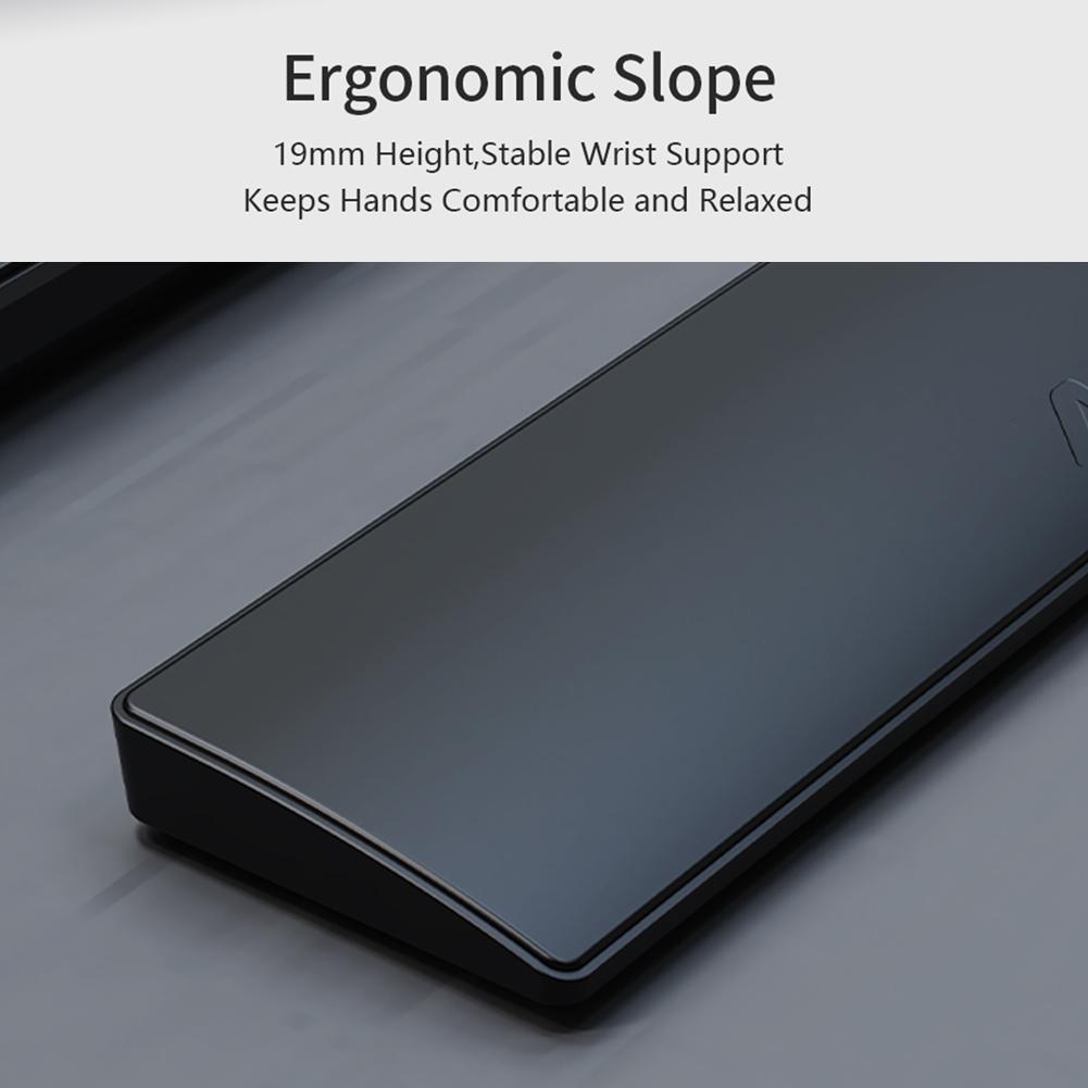 3. Угол:Благодаря высоте клавиатуры 19 мм и оптимальному наклону в 8° эта устойчивая подставка для запястий с противоскользящим резиновым покрытием обеспечивает естественное положение рук на клавиатуре без провисания запястий.. Наслаждайтесь более комфортным набором текста, минимизируя дискомфорт в запястьях.