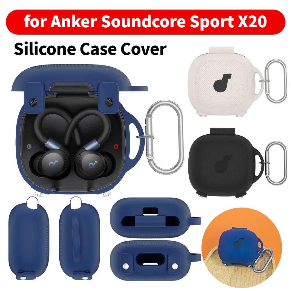 (Черный/Синий/Белый)-- Силиконовый чехол-накладкаСиликоновый чехол-накладка с карабином Мягкий защитный чехол Ударопрочный Защитный чехол для всего корпуса Защита от царапин Дизайн с видимым логотипом Пыленепроницаемый для зарядного кейса Soundcore Sport X20 от Anker