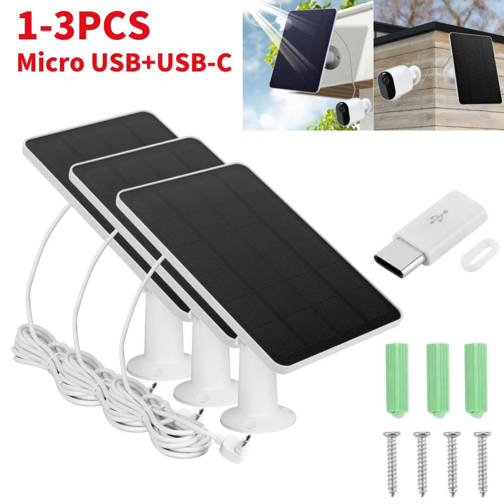 Зарядное устройство для солнечной панели мощностью 4 Вт/6 Вт Водонепроницаемое зарядное устройство для камеры с солнечной панелью IP65 с кабелем Micro USB длиной 9,8 фута. Регулируемое на 360° настенное крепление, совместимое с прожектором Arlo Essential/камерой-прожектором XL для камеры видеонаблюдения постоянного тока 4,5–5,5 В с перезаряжаемым аккумулятором и микро USB и USB. C-порт