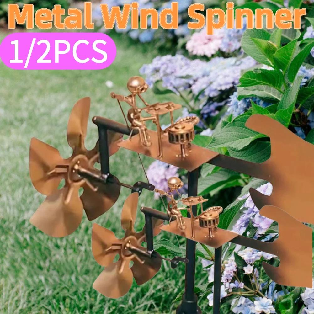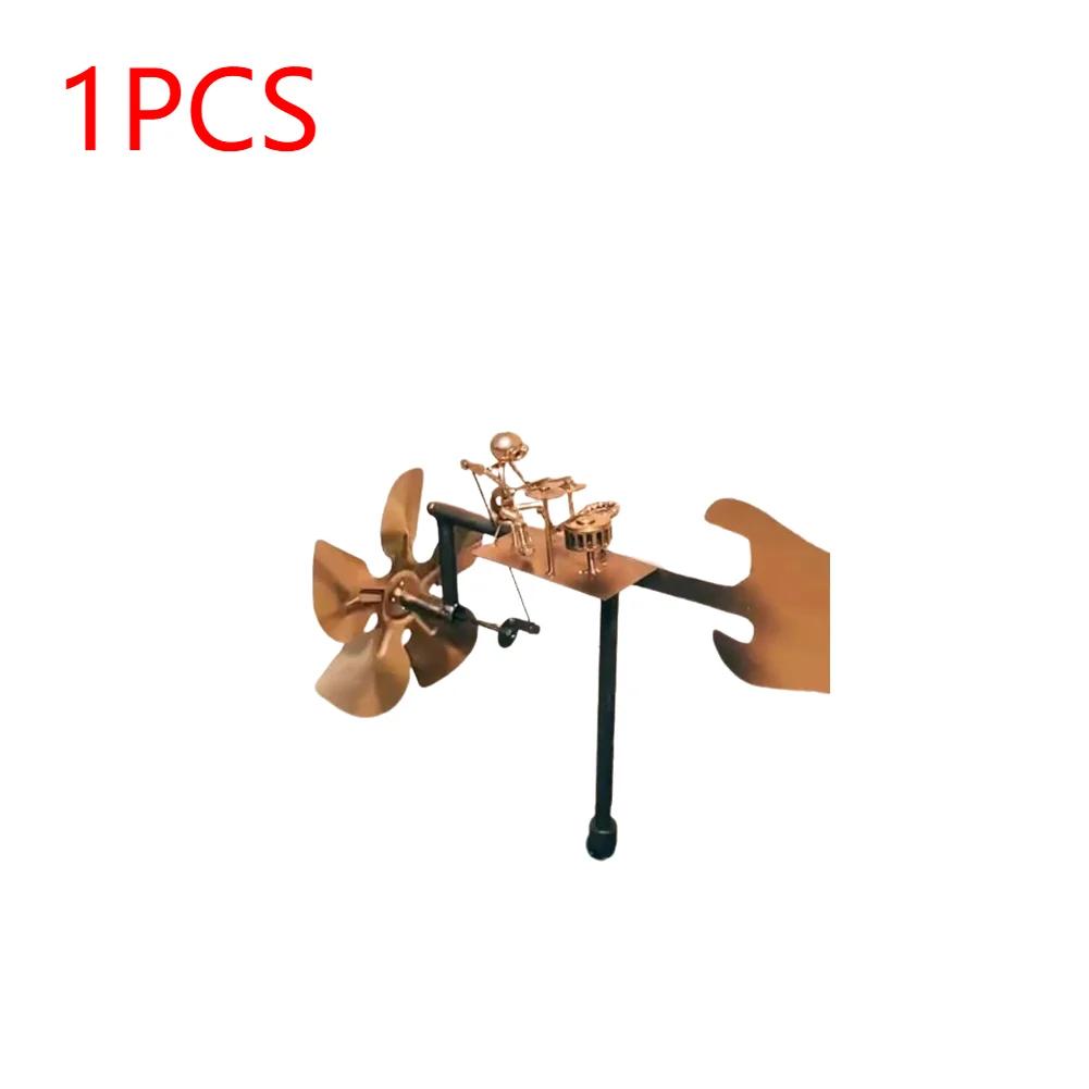 Metal Drummer Windmill Statue Beat The Drums with The Wind Decorative Wind Power Rock Art Statue for Yard Art Lawn Garden Decor