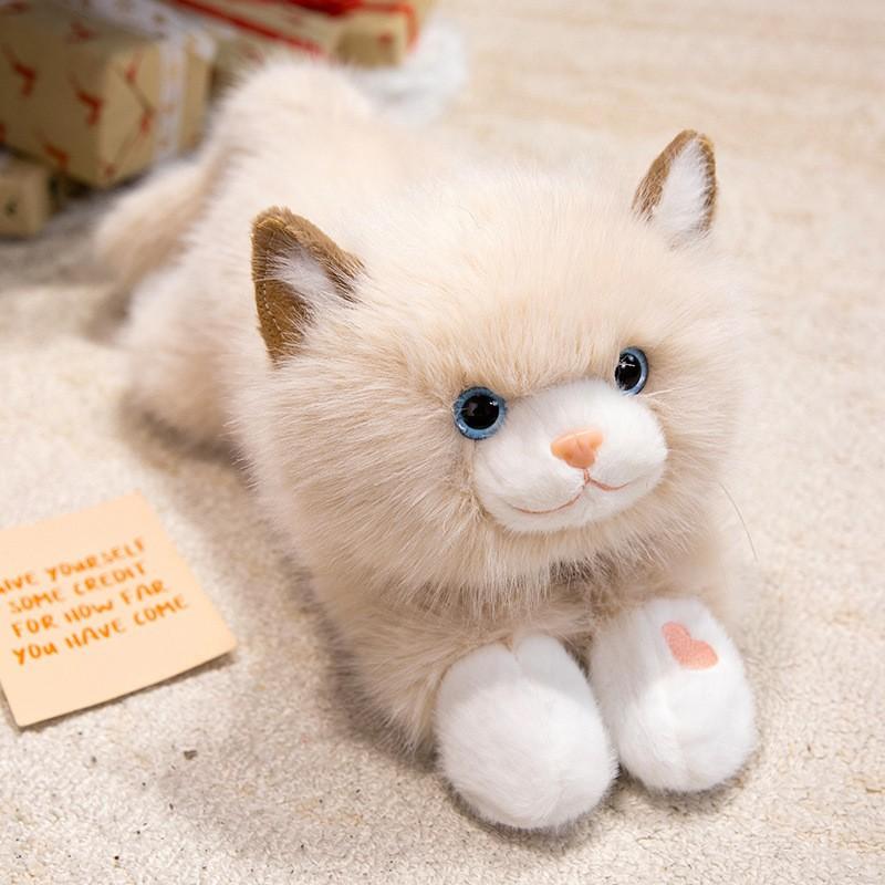 Meowing Calming Plush Kitten Doll, Lying Down Stuffed Animal Toy, Realistic Cat Plushie with Sound for Kids, Cuddly Companion Gift