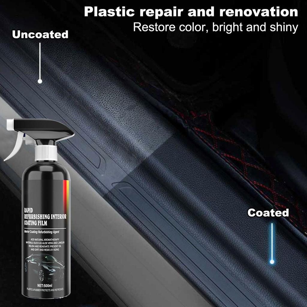 The car interior restorer is a vital liquid agent designed for refurbishment, cleaning, waxing, maintenance, and care of your vehicle's interior. This 500ML solution effectively removes oil stains and dust while restoring the natural shine of leather seats, rubber components, armrests, and door areas. Suitable for cars, trucks, SUVs, and RVs, it ensures thorough cleaning and long-lasting protection. The formula enhances the appearance of various materials commonly found in vehicle interiors, making it versatile for multiple surfaces. Regular use helps maintain a clean and well-cared interior, extending the lifespan of your vehicle's furnishings. Use this restorer to keep your car environment clean and visually appealing.