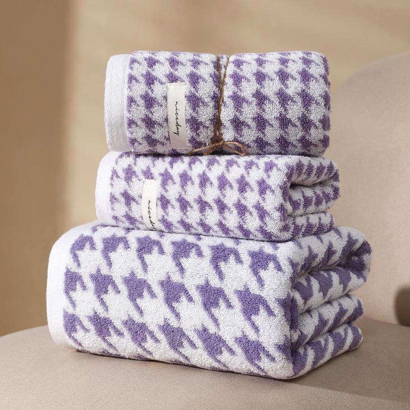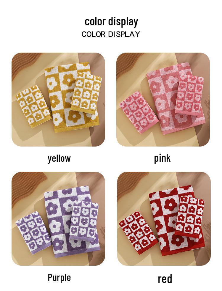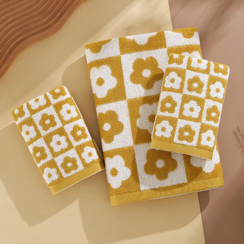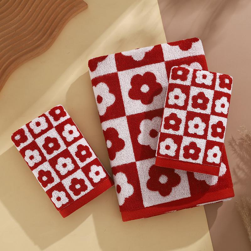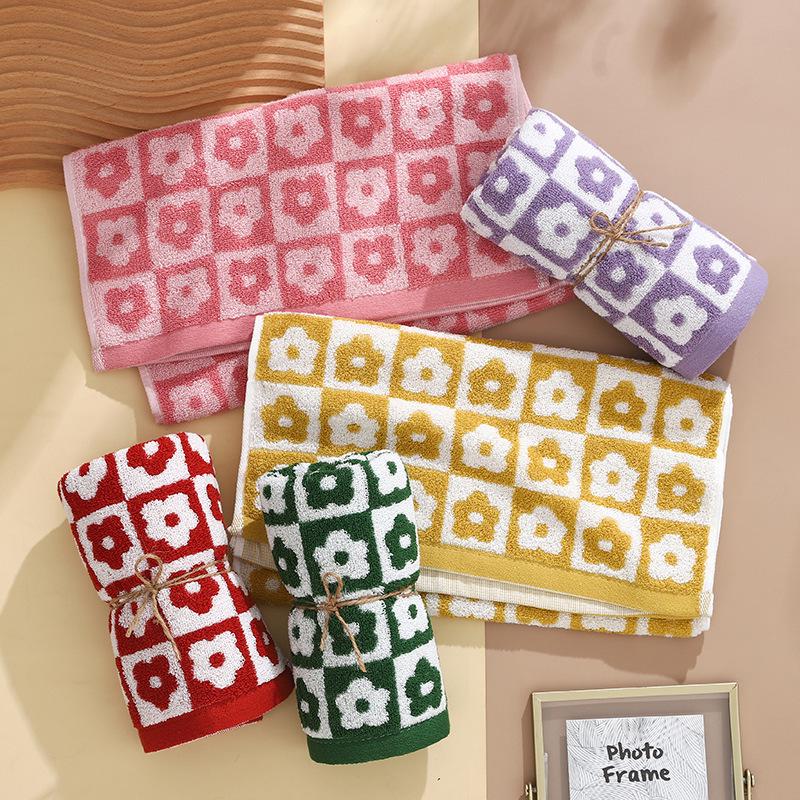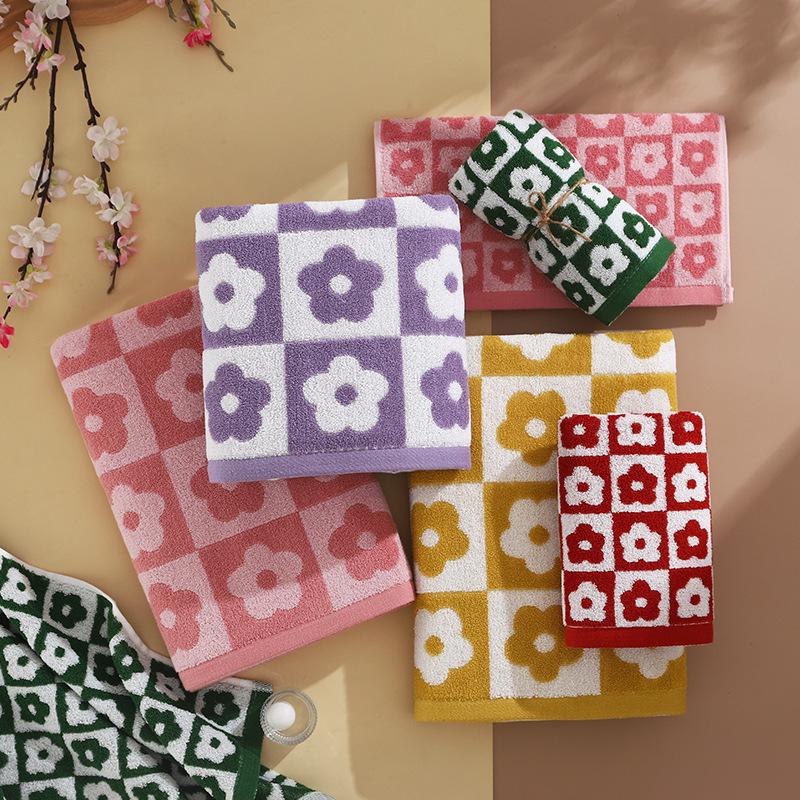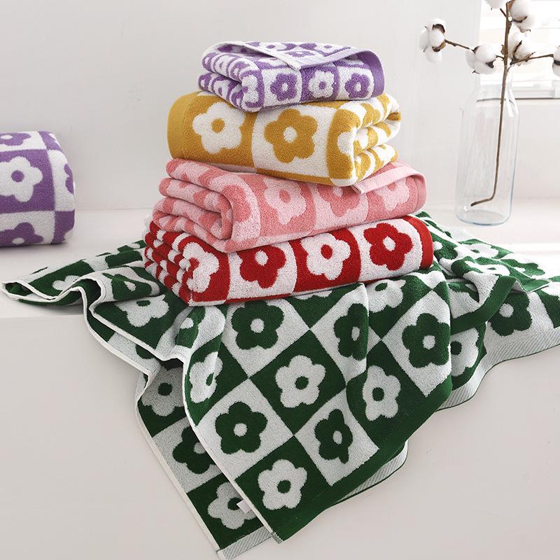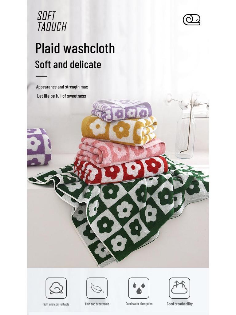 Набор ретро клетчатых цветочных полотенец для ванны и лица - Мягкие, Впитывающие, Простой стиль, Парные полотенца