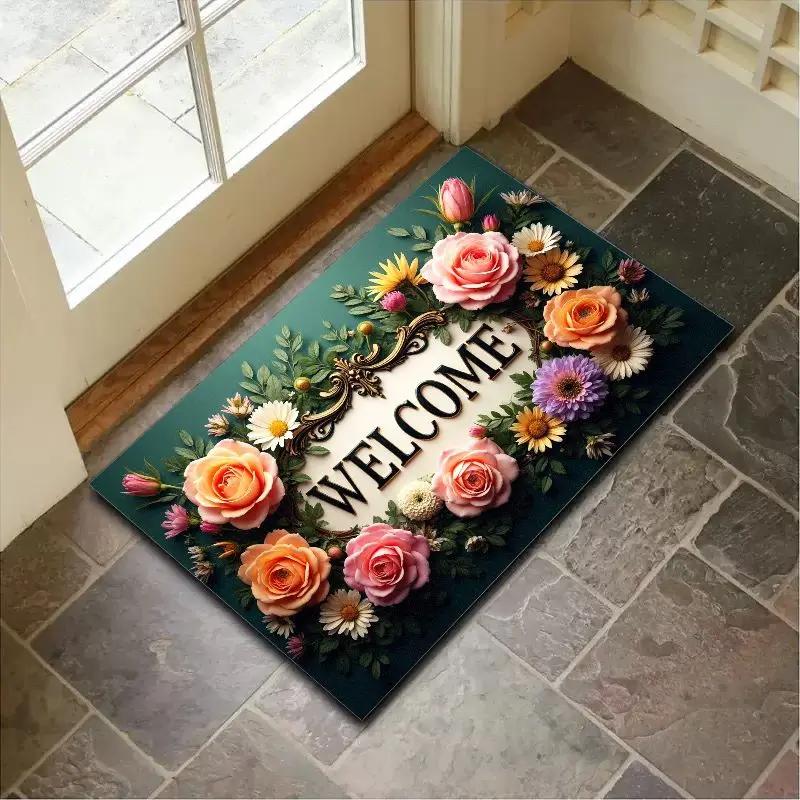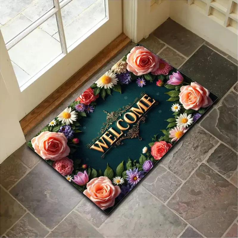 Добро пожаловать Цветочный Входной Коврик Домашний Декор Ковер Внутри Снаружи Напольный Коврик Гостиная Спальня Ванная Кухня Коврик