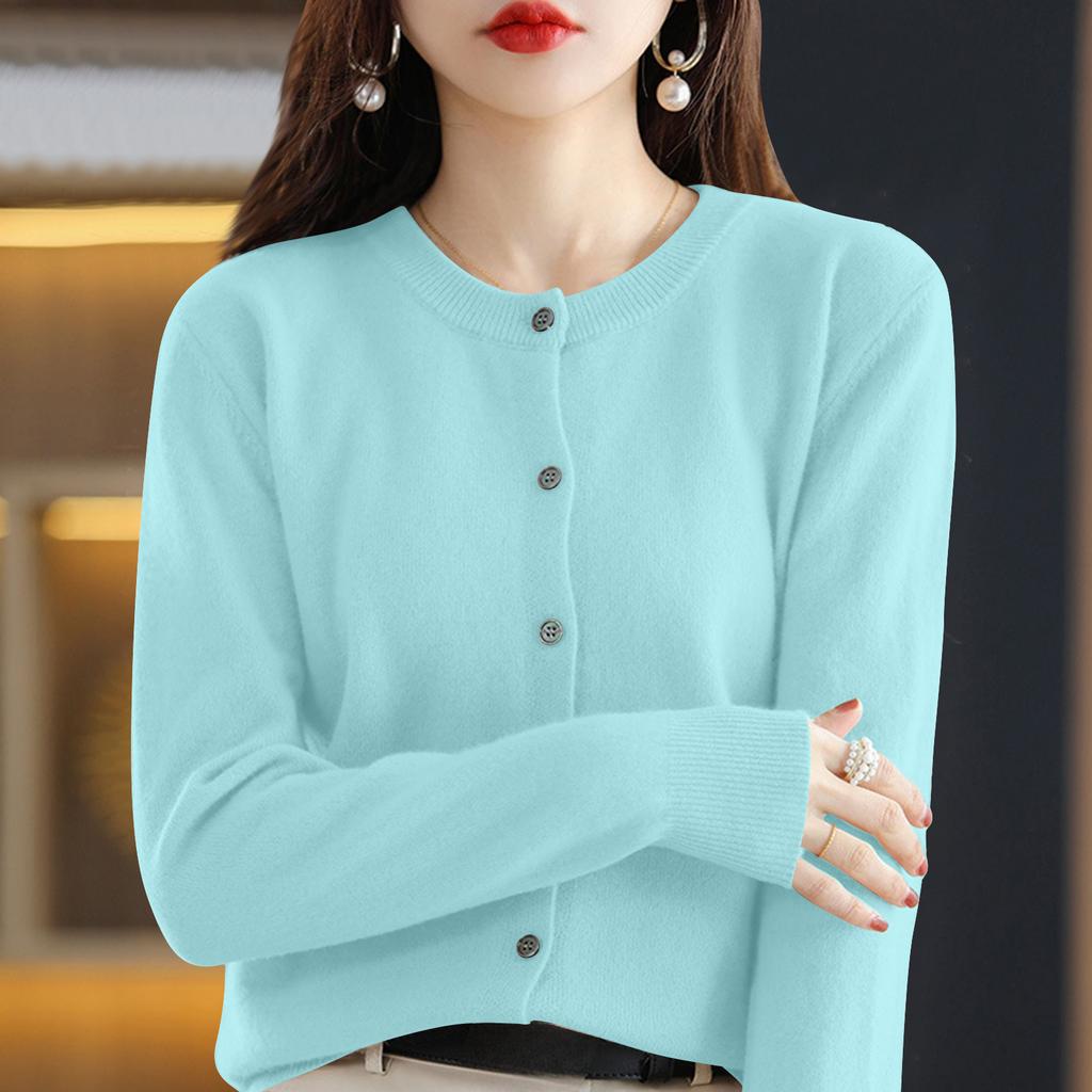 Женский кардиган на пуговицах с круглым вырезом - Вязаный свитер для верхней одежды