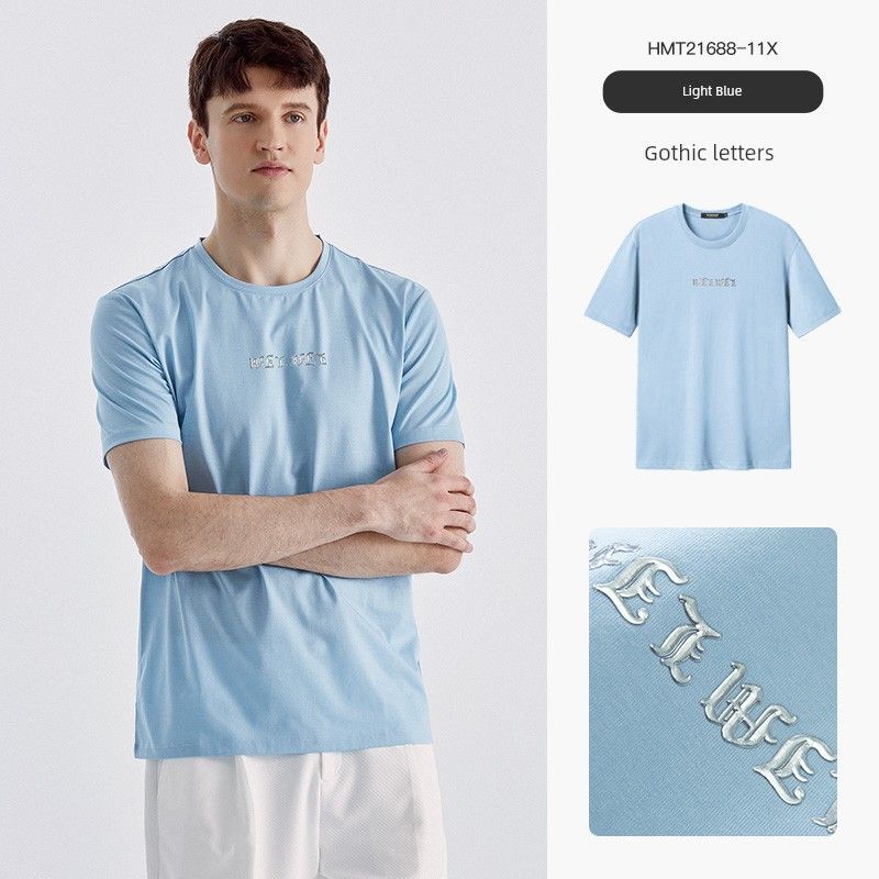 [Pure Cotton] Thousand Paper Cranes Men's Short-Sleeved T-Shirt for Men, Summer 2024, Light Blue, Loose Round Neck Base Shirt 21688 — купить товар онлайн с бесплатной доставкой по всему миру!