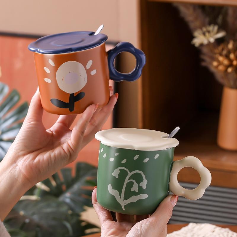 Подглазурная цветная керамическая кружка с крышкой, кофейная чашка, женская, высокая ценность, офисная чашка для питья, женская, интернет-знаменитость, чашка для воды — купить товар онлайн с бесплатной доставкой по всему миру!