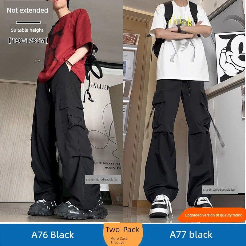 Large Pocket Cargo Pants for Men, Autumn Style, Black, Extended Length, Tall Men's Pants, Casual Straight-Leg Sweatpants