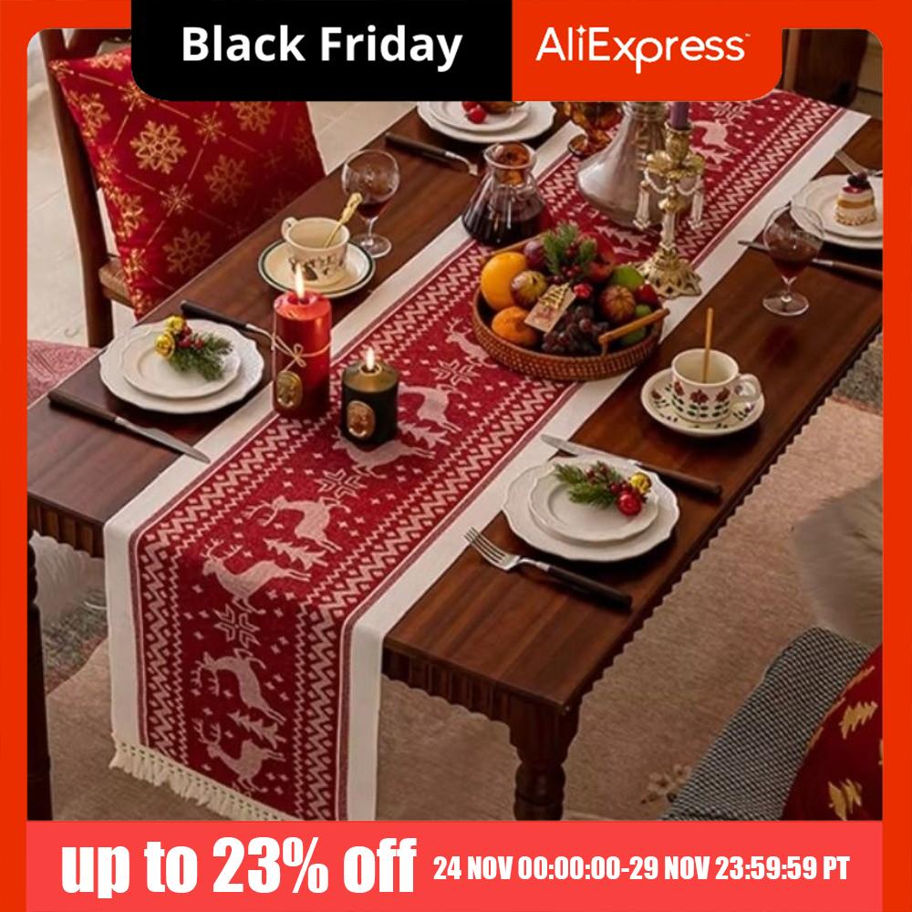 Прямоугольная Рождественская скатерть-дорожка Утолщенная с принтом Рождественской елки и лосей Настольный флаг Моющаяся Рождественская настольная декорация — купить товар онлайн с бесплатной доставкой по всему миру!