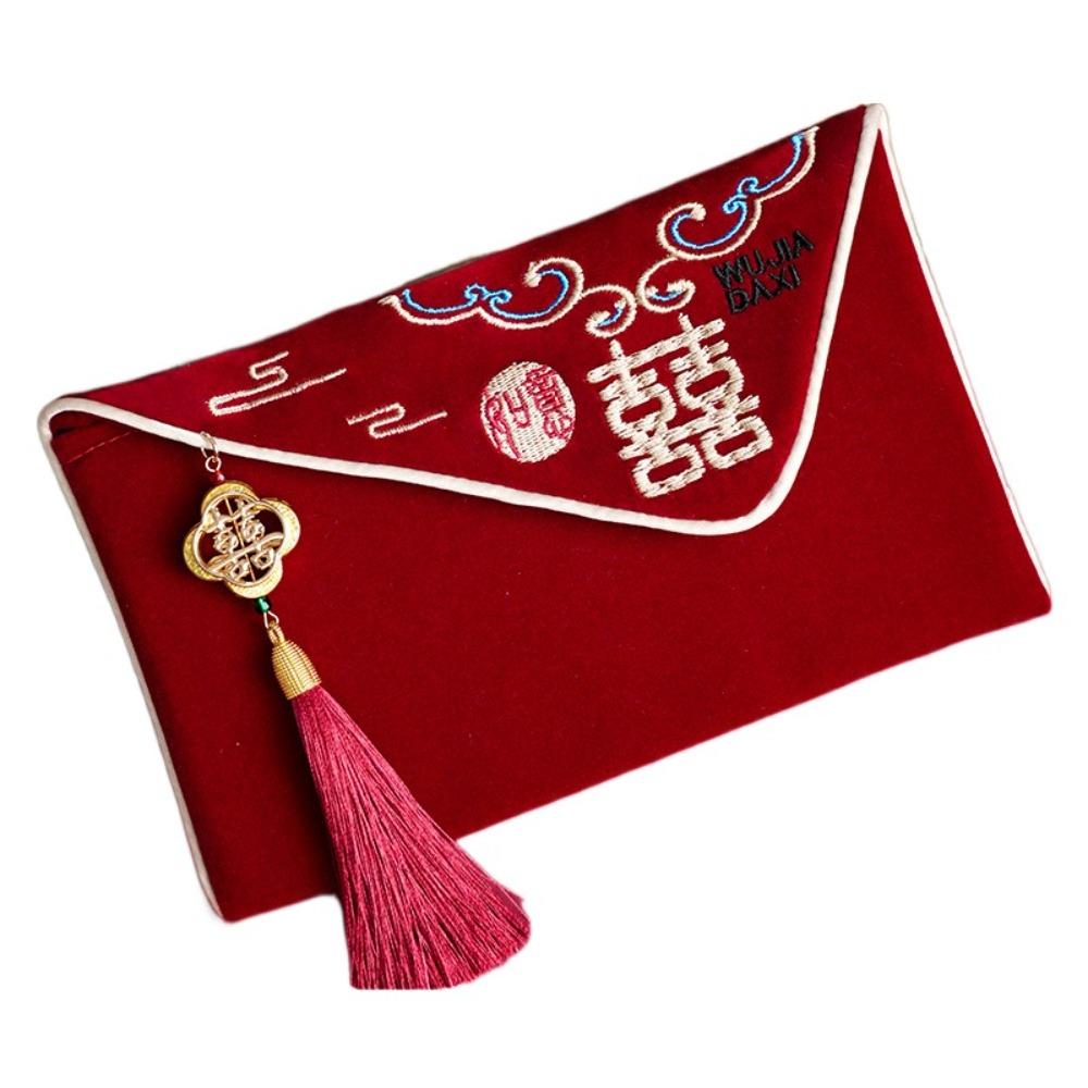 Multiple Patterns Wedding Red Envelope Best Wishes Embroidery New Year Blessing Bag Canvas Bag Tassel Design Red Money Packet