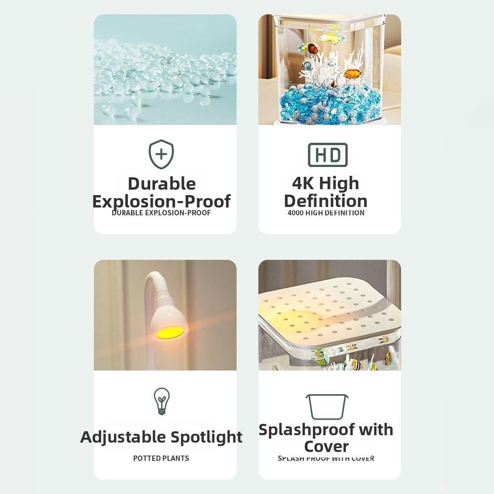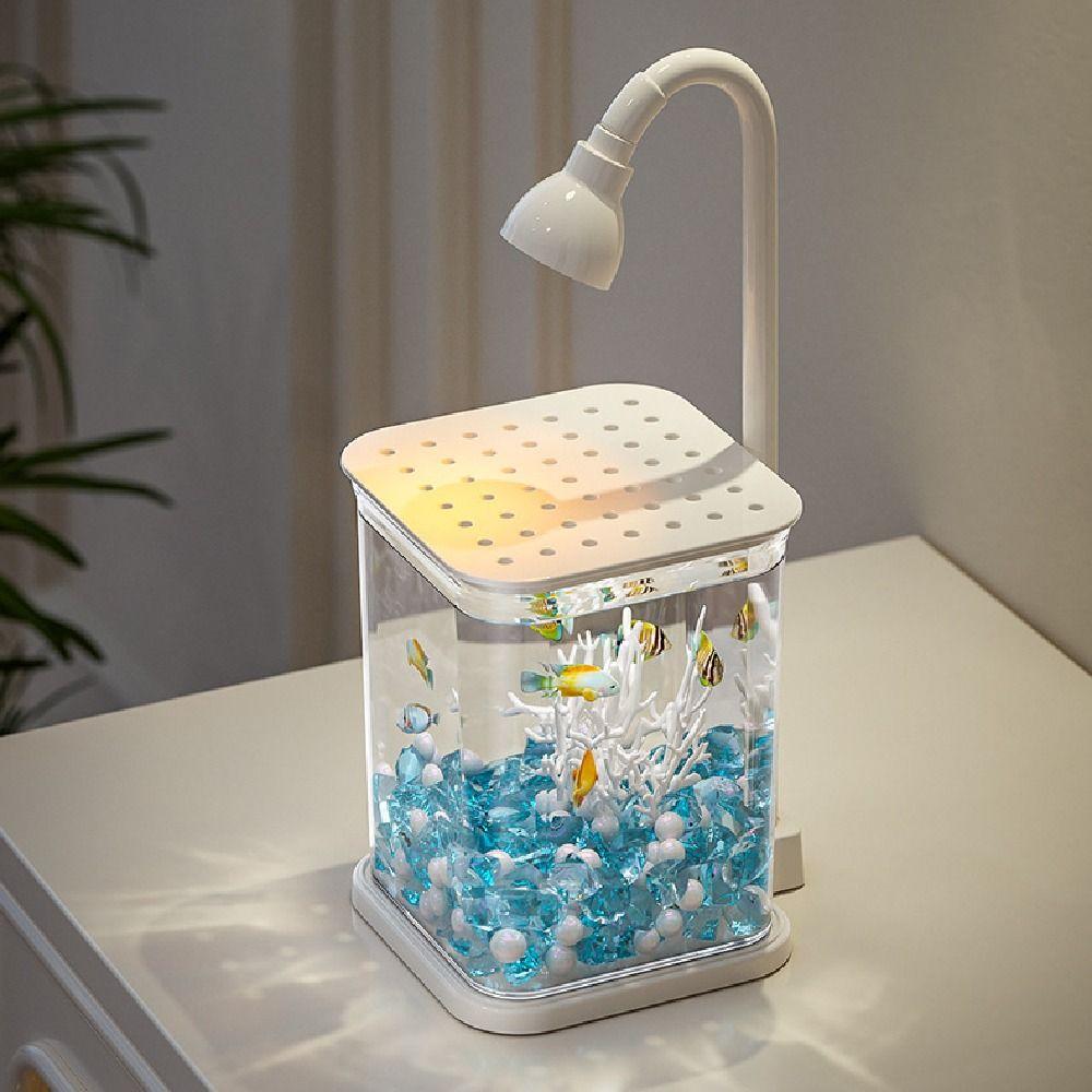 Креативный мини-настольный аквариум INS со светодиодной подсветкой, пластиковый прозрачный аквариум, бесшумная работа, прочный ландшафтный аквариум