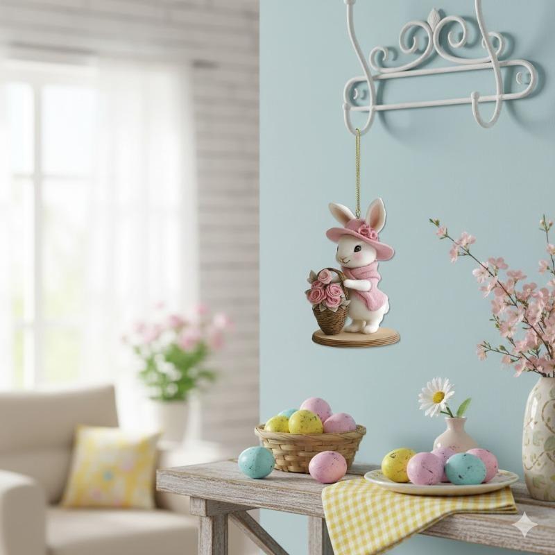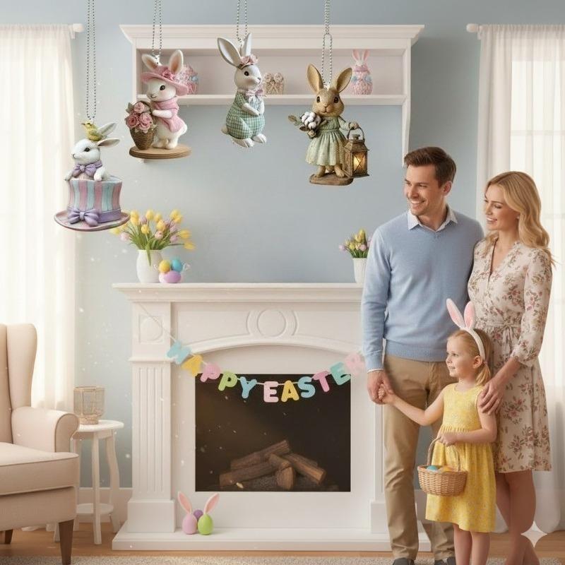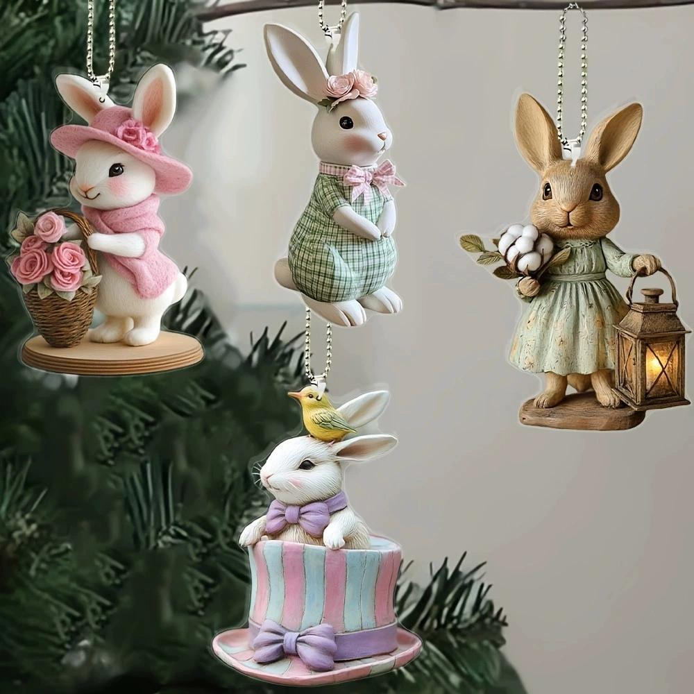 4PCS Holiday Car Hanging Ornament Valentine's Day Acrylic 2D Cartoon Cow and Rabbit Rearview Mirror Decoration Easter Car Charm