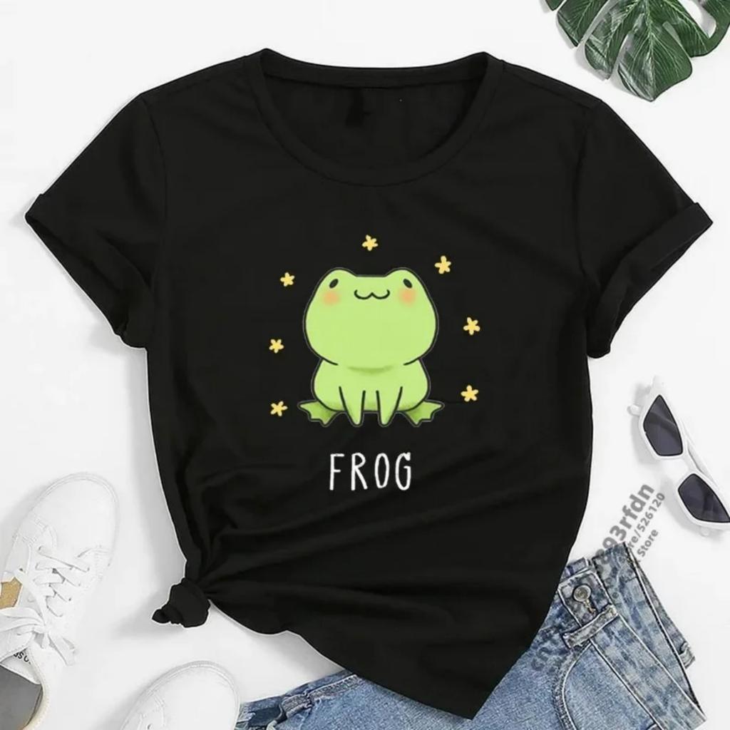 Футболки с принтом лягушки из мультфильма, женские летние свободные футболки с короткими рукавами и аниме, женская футболка в стиле Харадзюку с круглым вырезом, уличная одежда, каваи, футболка с аниме