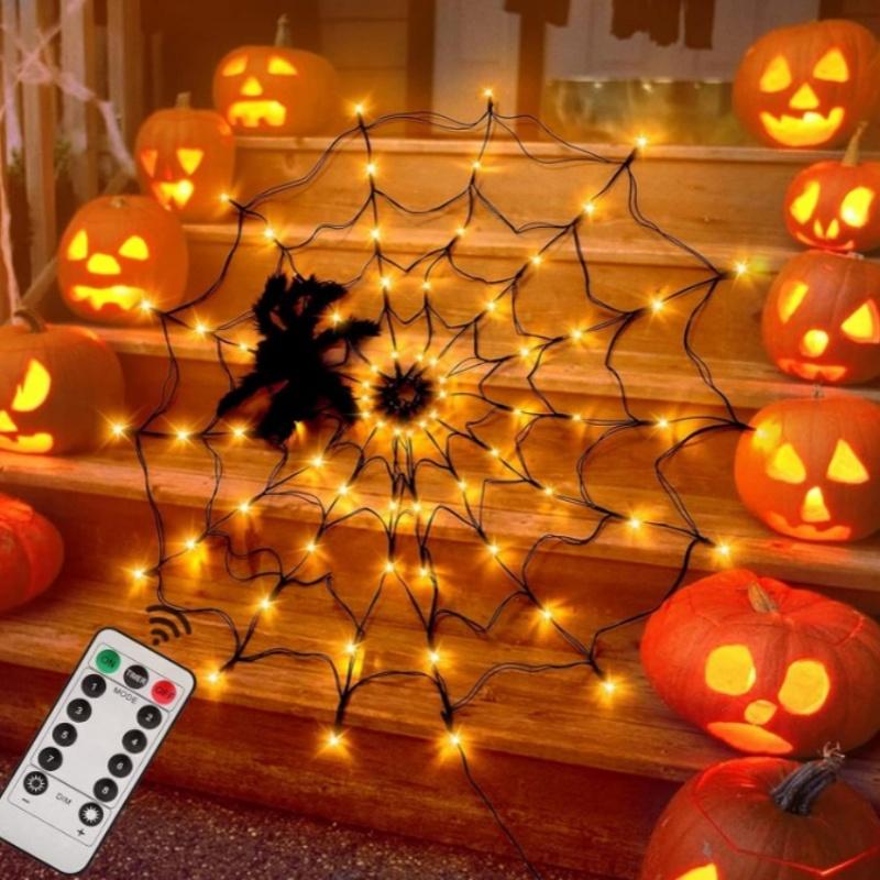 Хэллоуин Светящаяся паутина Украшения на Хэллоуин Огни Паутина Огни Украшения на Хэллоуин Уличные Украшения на Хэллоуин Внутренние Украшения