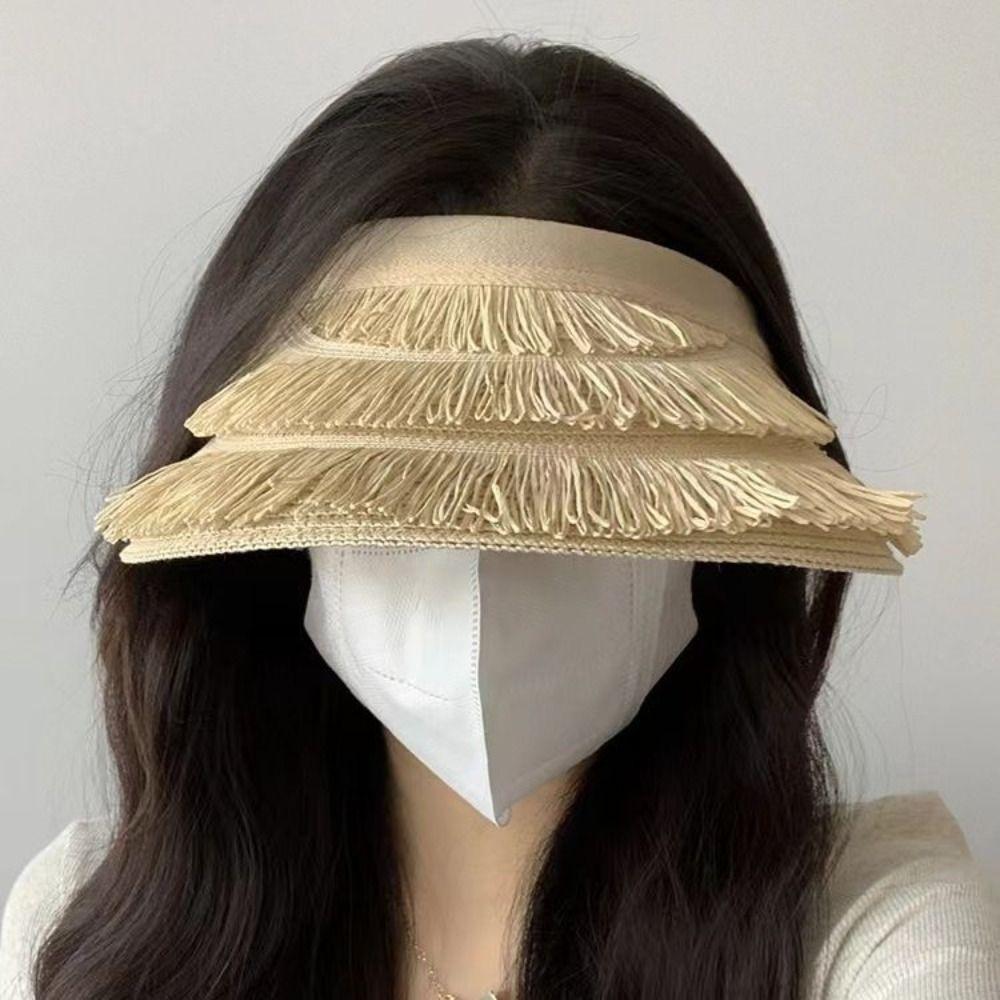 Дизайнерские соломенные шляпы с кисточками Летняя шляпа от солнца Модная шляпа от солнца с пустой макушкой для женщин