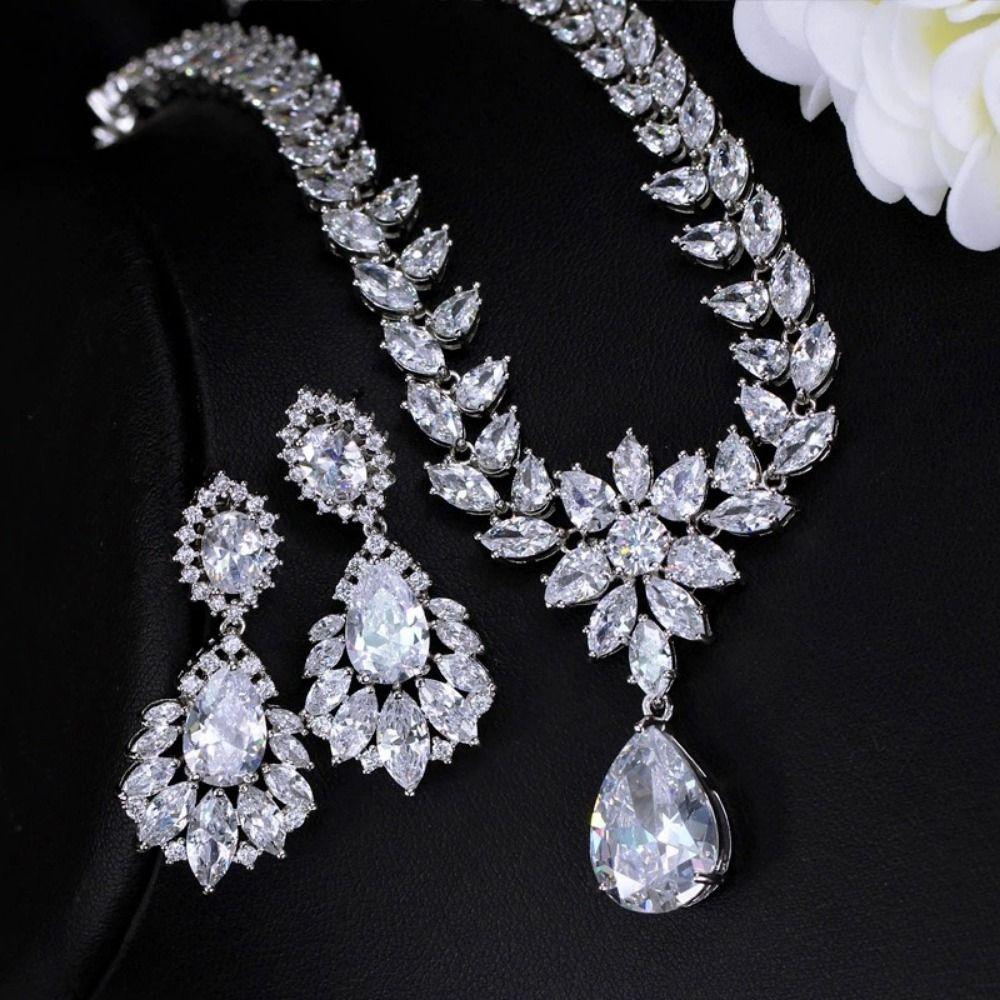 Rhinestone Necklace Earring sets Teardrop Crystal Choker Necklace Luxury Bridal Jewelry Set Prom