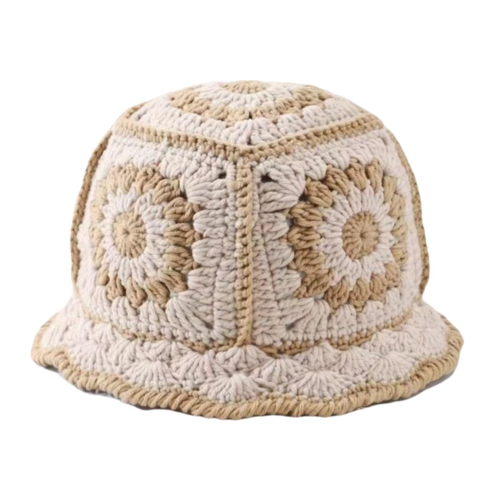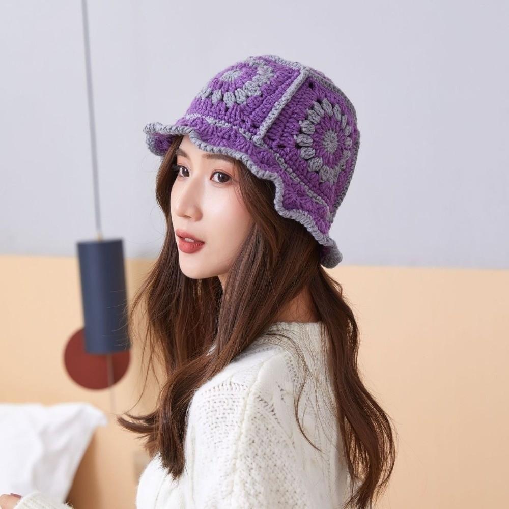Fleece thread Flower Sun Hat Hollow Bucket Hat Casual Knitted Fisherman Hat Student