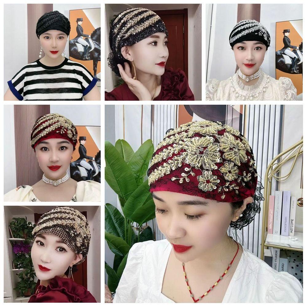 Head Scarf Lace Turban Hats Rhinestone Islamic Under Scarf Solid Color Summer Thin Headscarf Girls