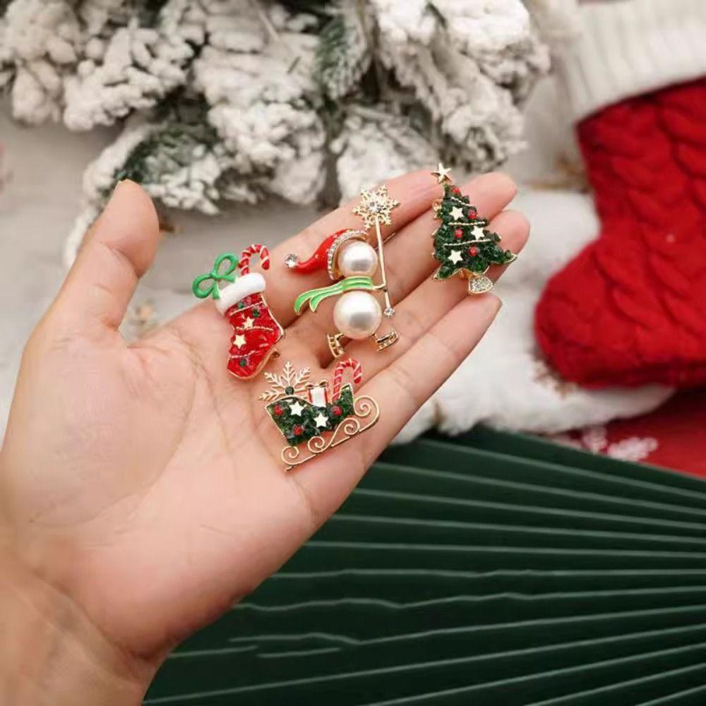 Snowman Enamel Rhinestone Brooches Korean Style Christmas Tree Brooch Cute Christmas Brooch Women