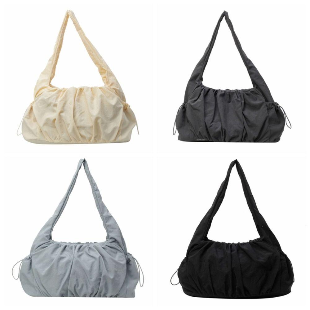 Drawstring Cloud Crossbody Bag Pleated Casual Underarm Bag Handbag Canvas Shoulder Bag School
