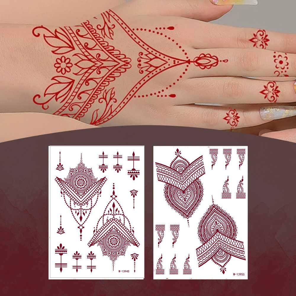 9pcs Brown Red Hand Tattoo Stickers Lace Hollow Temporary Tattoos Set Flower Fake Tattoos Thigh