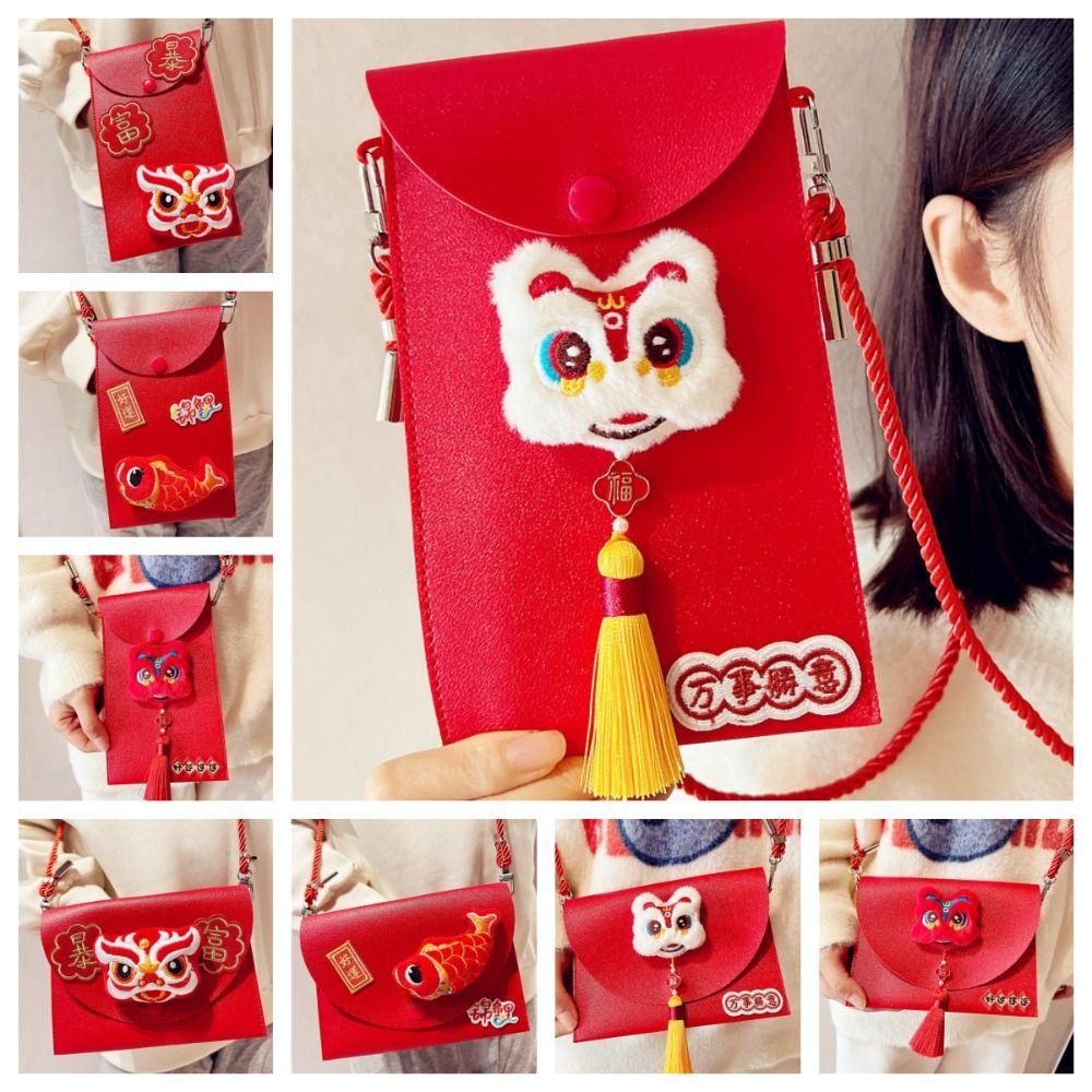 Tassel PU Leather Red Envelope Chinese Lion Dance New Year Money Envelope Party Gifts
