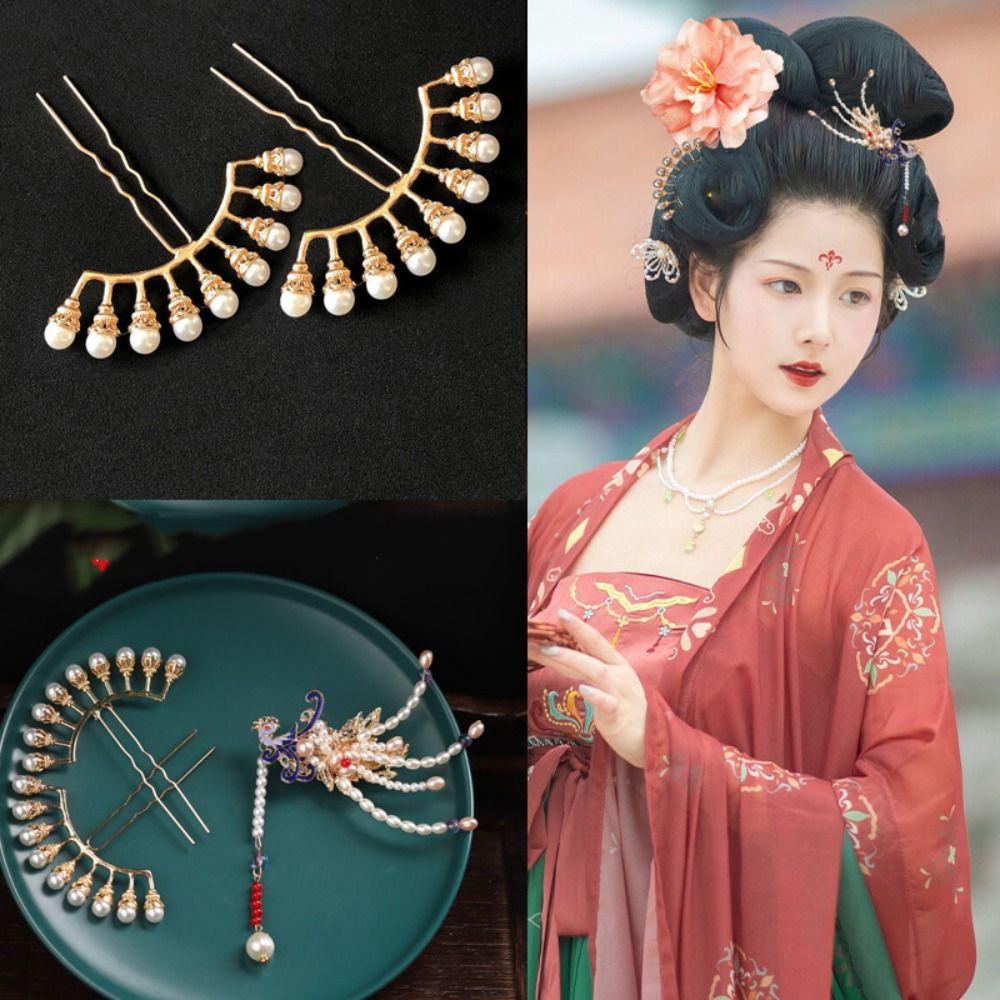 Шпилька для волос в китайском стиле с кисточками и жемчугом, головной убор Ханфу, старинная палочка для волос Ханфу, женская заколка — купить товар онлайн с бесплатной доставкой по всему миру!