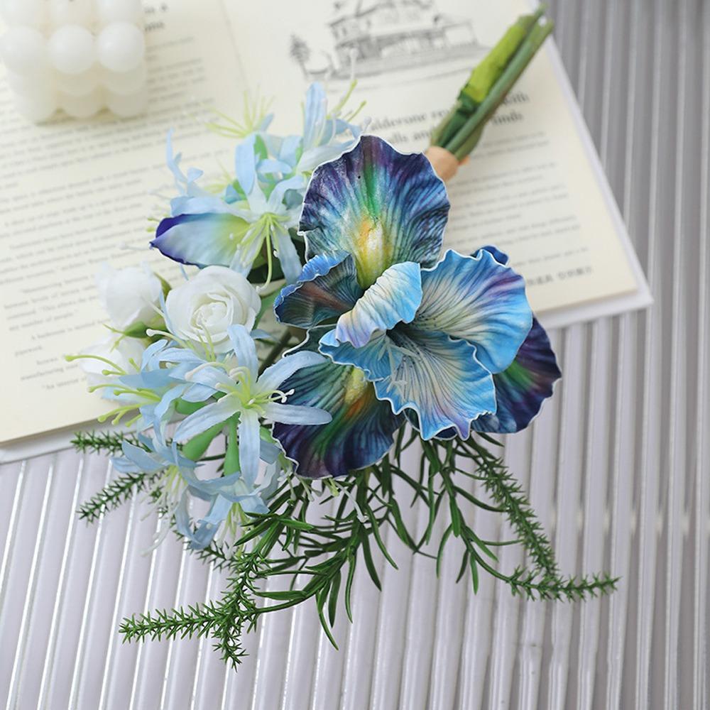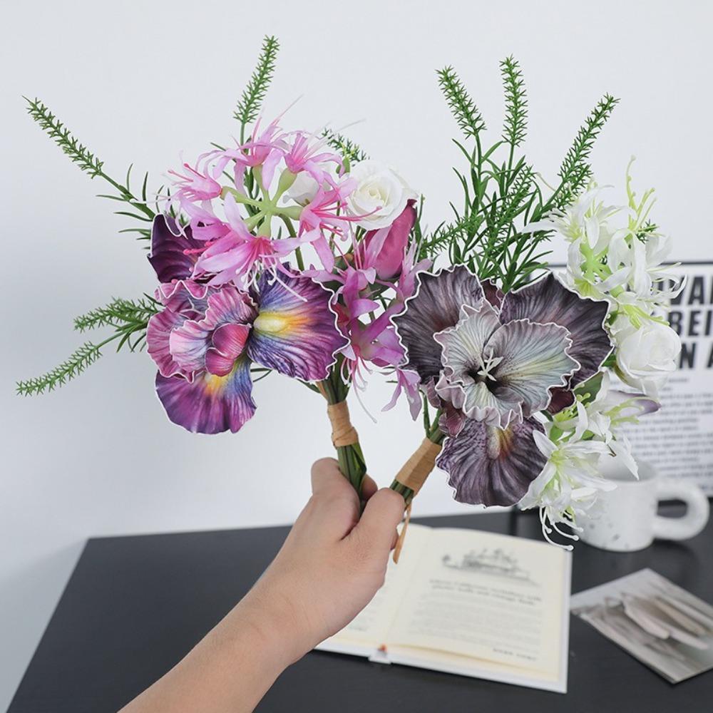 Handmade Simulation Iris Bouquet Realistic Silk Fake Flower Wedding Party Decor