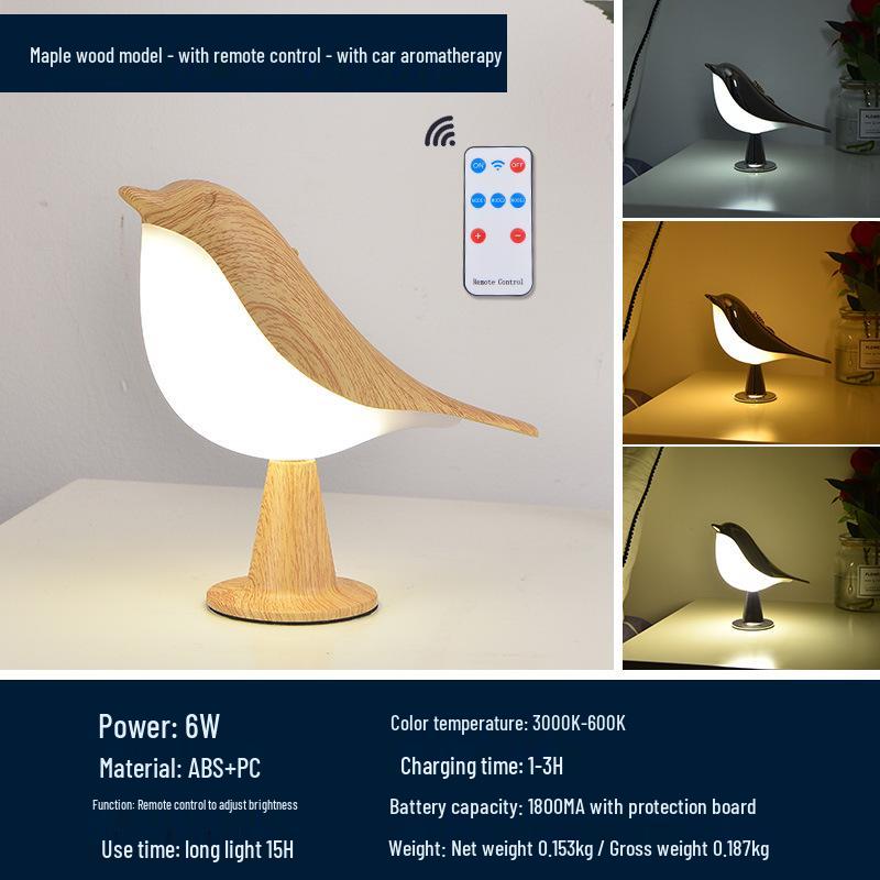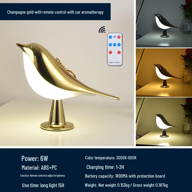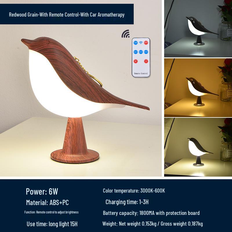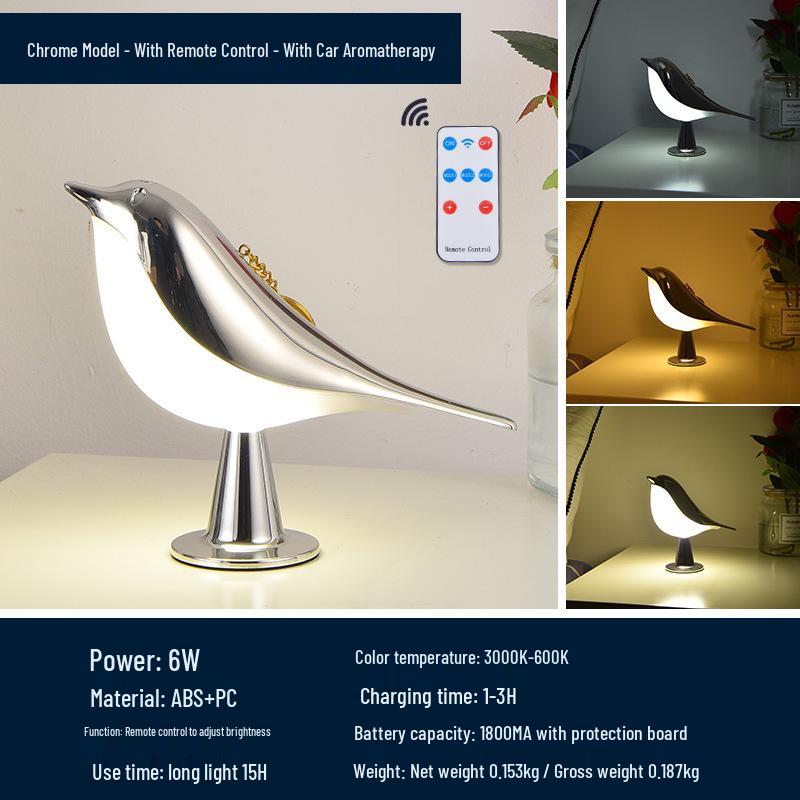 Magpie Aroma LED Night Light: Touch-Activated Bird Lamp for Car, Bedroom, or Bedside Table.