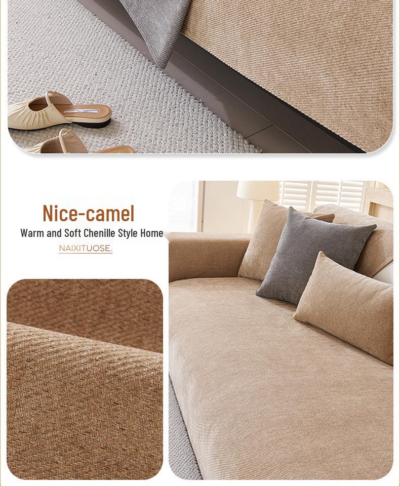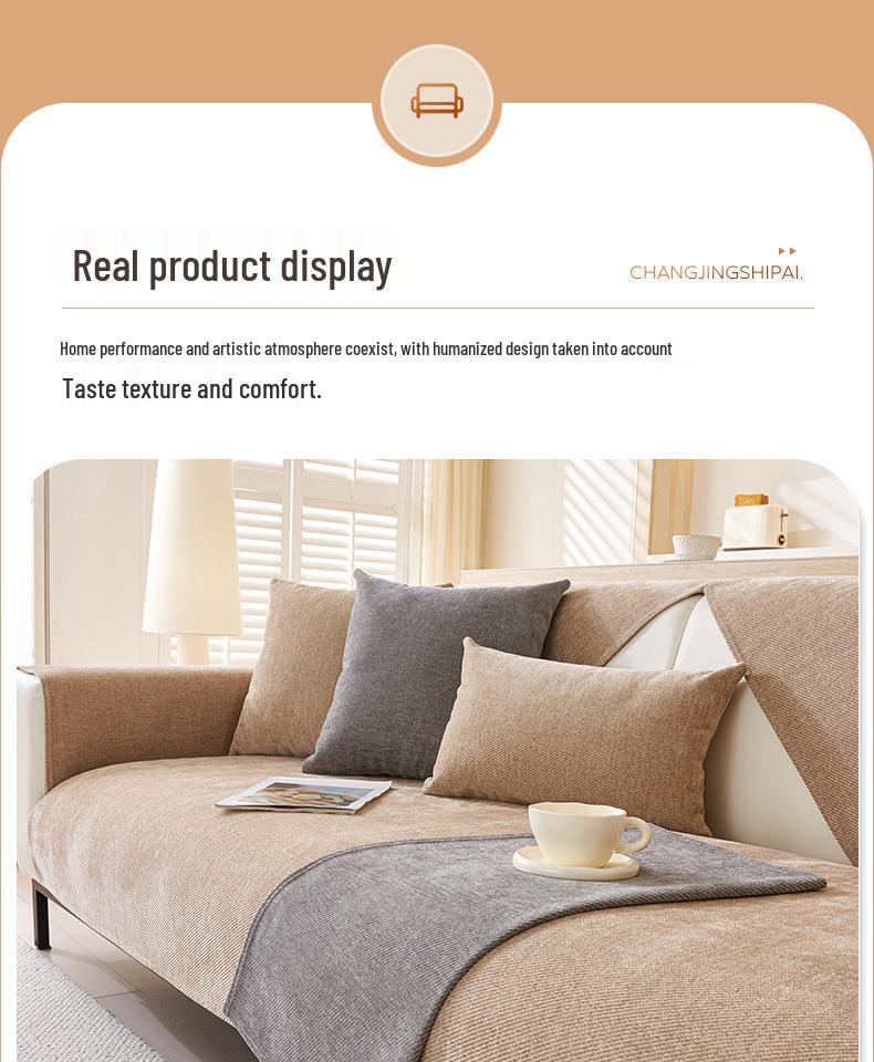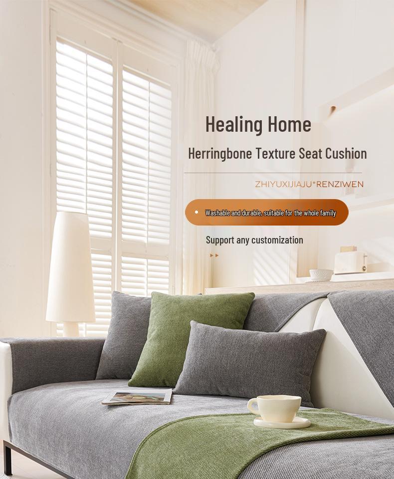 2025 Универсальная Нескользящая Водонепроницаемая Шенилловая Подушка для Дивана - Современный Однотонный, Четыре Сезона