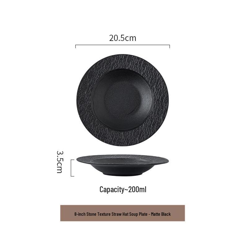 Модель8-дюймовая суповая тарелка из соломы с каменным узором - матово-черная