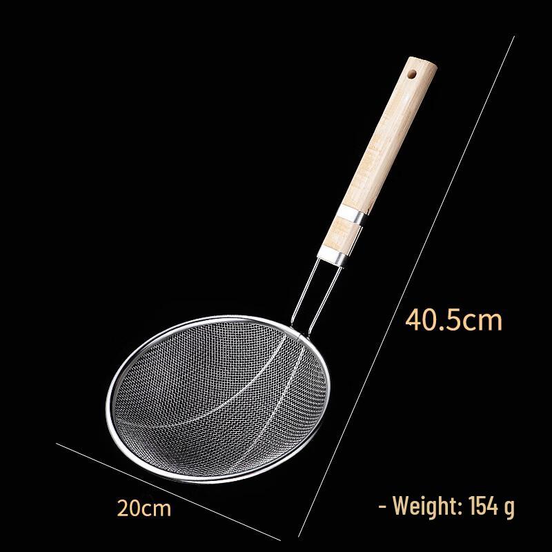 Stainless Steel Deep Fry Skimmer with Wooden Handle
